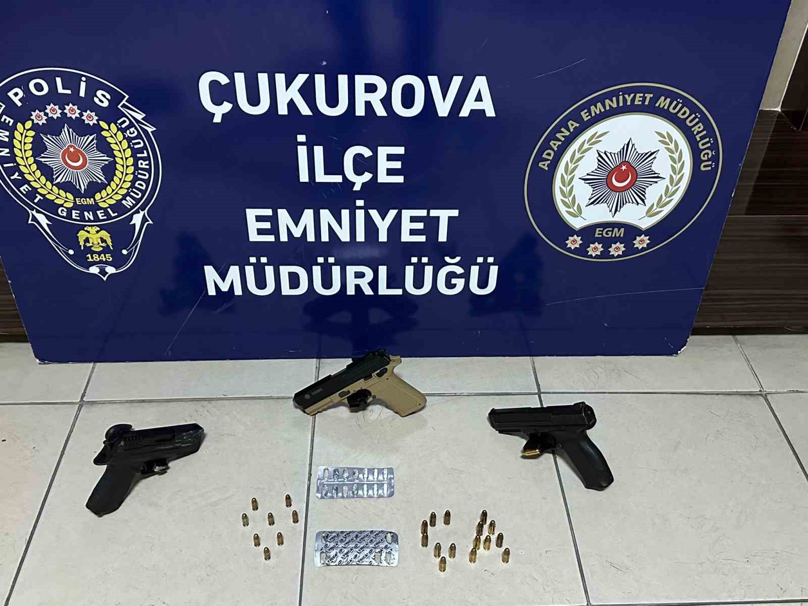 Adana'da umuma açık yerlere yapılan denetimlerde 3 ruhsatsız tabanca, 14 litre etil alkol ve 14 bidon gümrük kaçağı alkol ele geçilirken 3 kişi gözaltına alındı.