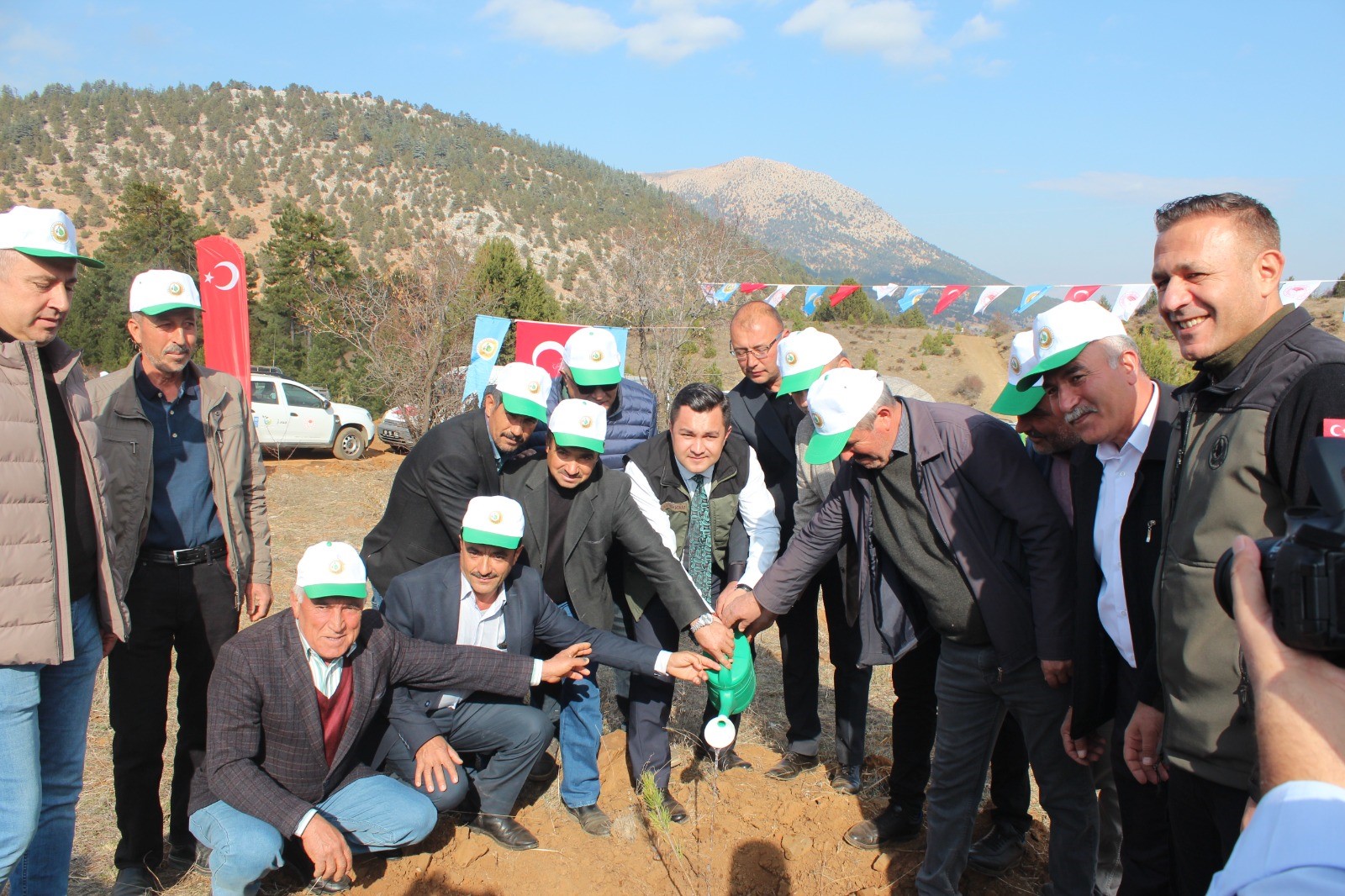 Konuşmaların ardından Vali Köşger ve beraberindekiler fidanları toprakla buluşturarak fidanların can suyunu verdiler.