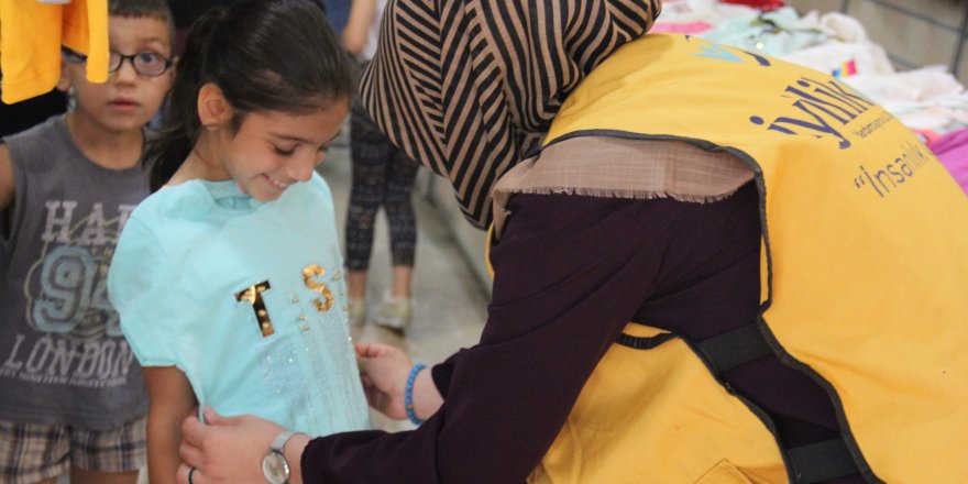 Giyecekleri kıyafetleri zevkleri ve bedenlerine göre seçerek alma ayrıcalığını elde eden çocuklar ve anneleri, kendilerine mağazada alışveriş yapıyor gibi bayramlık seçme şansı sunan dernek yöneticilerine teşekkür etti.
