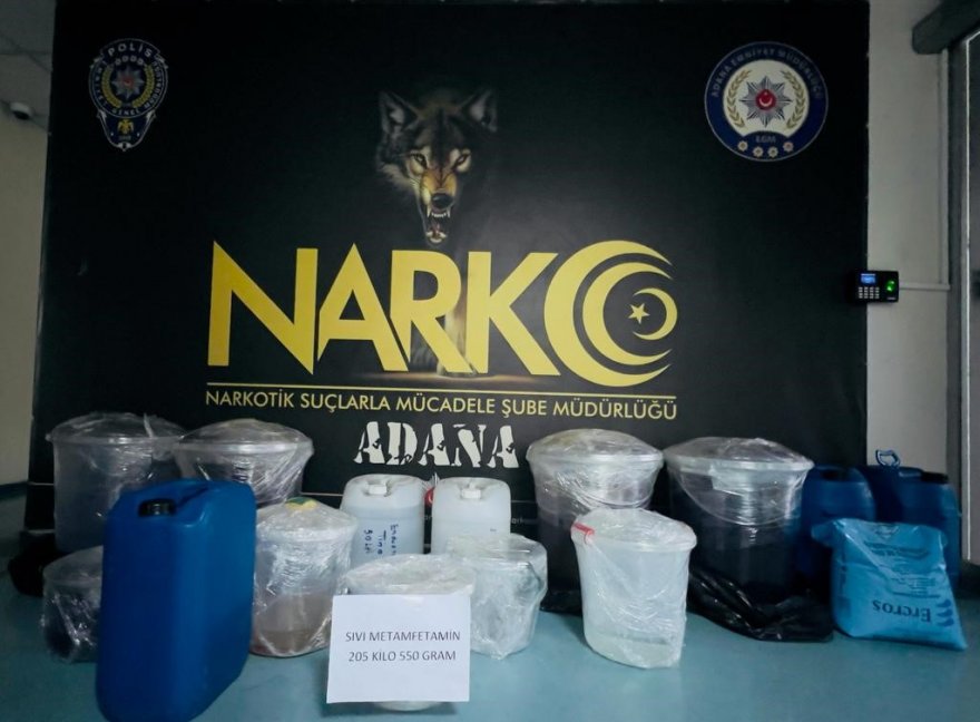 Adana'da polisin bir adrese yaptığı baskında 205 litre sıvı metamfetamin ele geçirilirken, kaçmaya çalışırken yakalanan 4 zanlı tutuklandı.