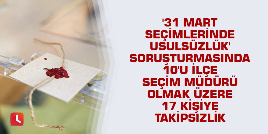 İstanbul Anadolu Cumhuriyet Başsavcılığı'nın, iptal edilen 31 Mart yerel seçimlerinde kanuna aykırı sandık kurulu görevlendirmesi yapıldığı gerekçesiyle 10'u ilçe seçim kurulu müdürü olmak üzere 17 kişi hakkında başlattığı soruşturmada "takipsizlik" kararı verildi.
