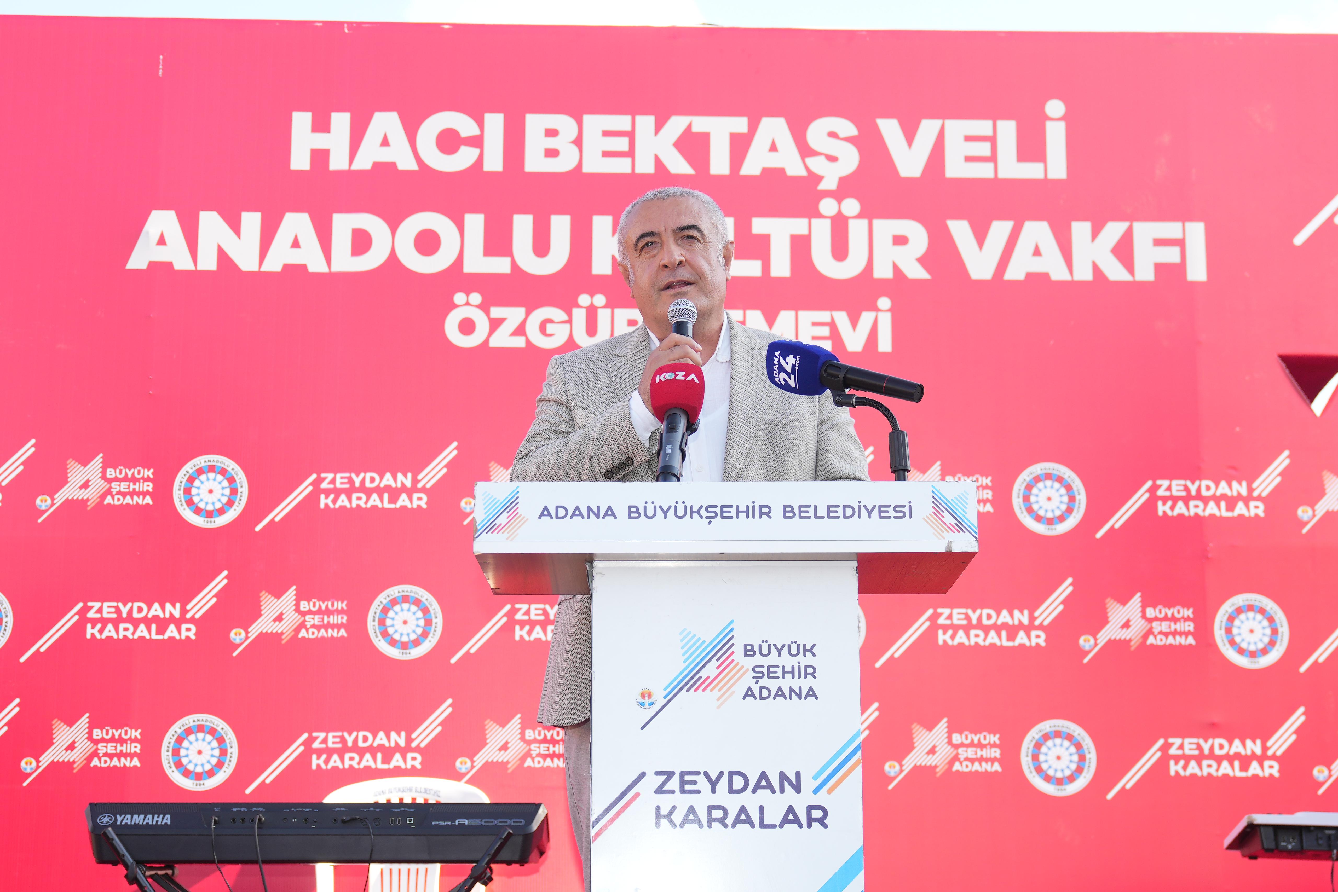 Adana Büyükşehir Belediyesi'nce Yüreğir ilçesinde inşa edilen Hacıbektaş Veli Anadolu Kültür Vakfı Özgür Cemevi'nin açılışına Türkiye Belediyeler Birliği Başkan Vekili ve Adana Büyükşehir Belediye Başkanı Zeydan Karalar, Hacıbektaş Veli Anadolu Kültür Vakfı Genel Başkanı Ercan Geçmez, ilçe belediye başkanları, milletvekilleri, siyasiler ve Adanalılar katıldı.