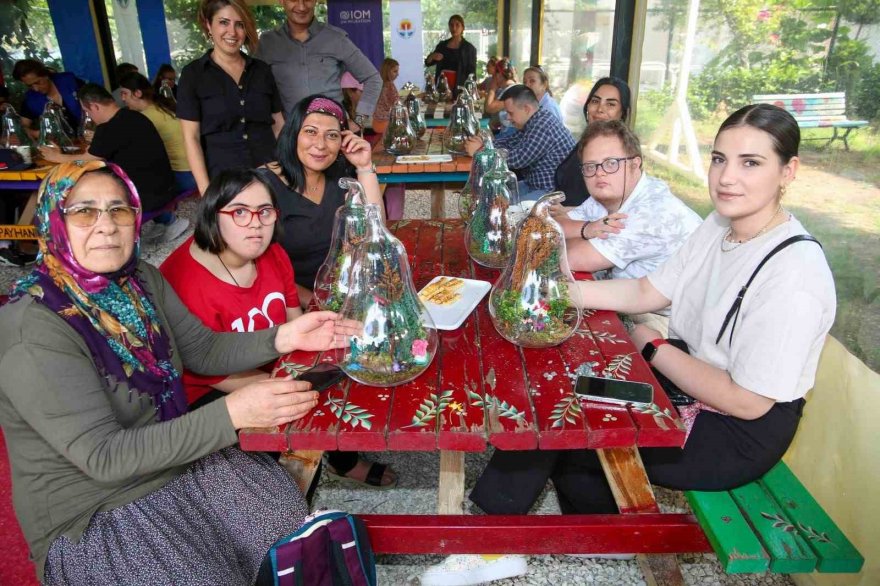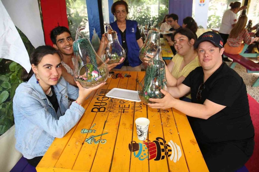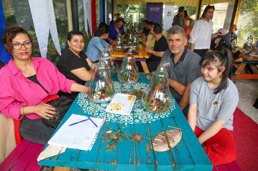 Atölye masaları etrafında özel bireyler ve aileleri kendi tasarımları olan teraryumları el emekleri ile yaparak gün sonunda birbirlerine hediye etti.