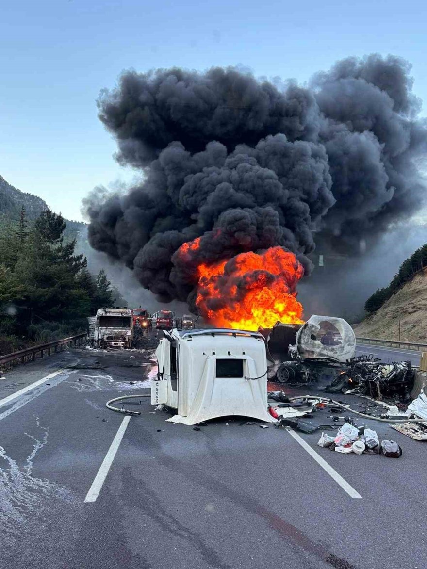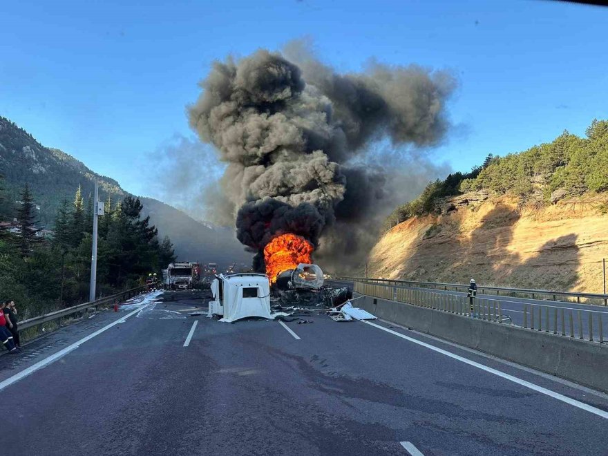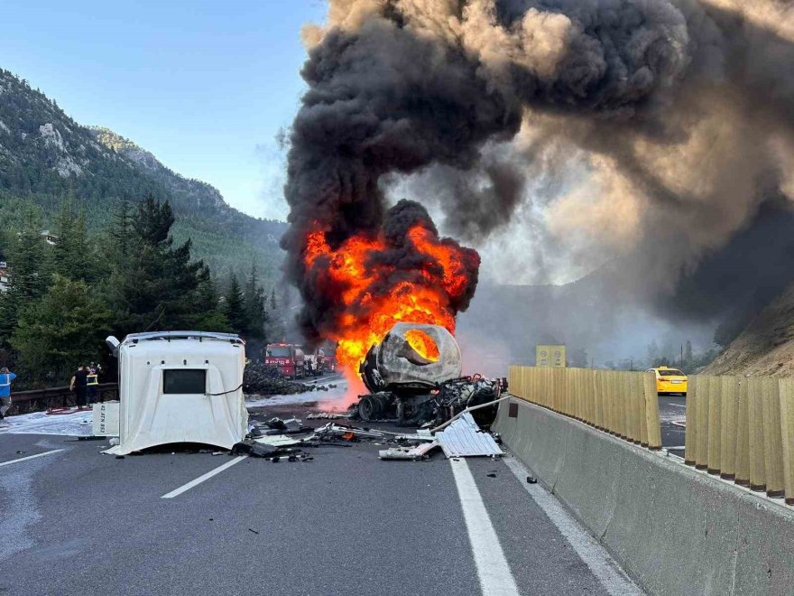 Adana'nın Pozantı ilçesinde otoyolda kaza yapan akaryakıt yüklü tır alev alev yandı. Otoyolda Ankara-Adana istikameti trafiğe kapatıldı.