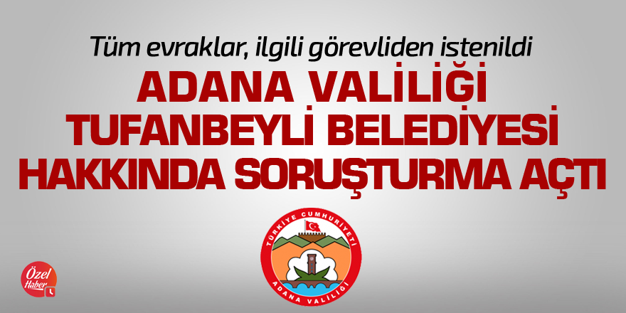 Adana Valiliği Defterdarlık Uzmanları Koordinatörlüğü, Tufanbeyli Belediyesi hakkındaki iddialar için bilgi ve belge istedi.