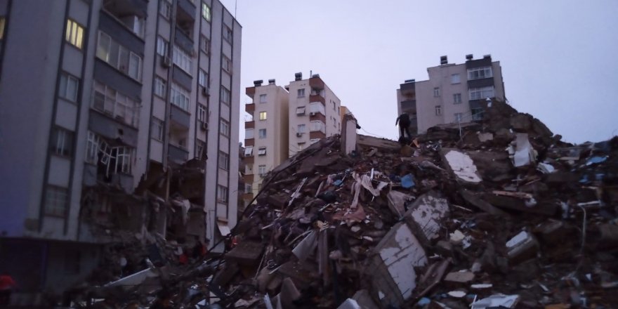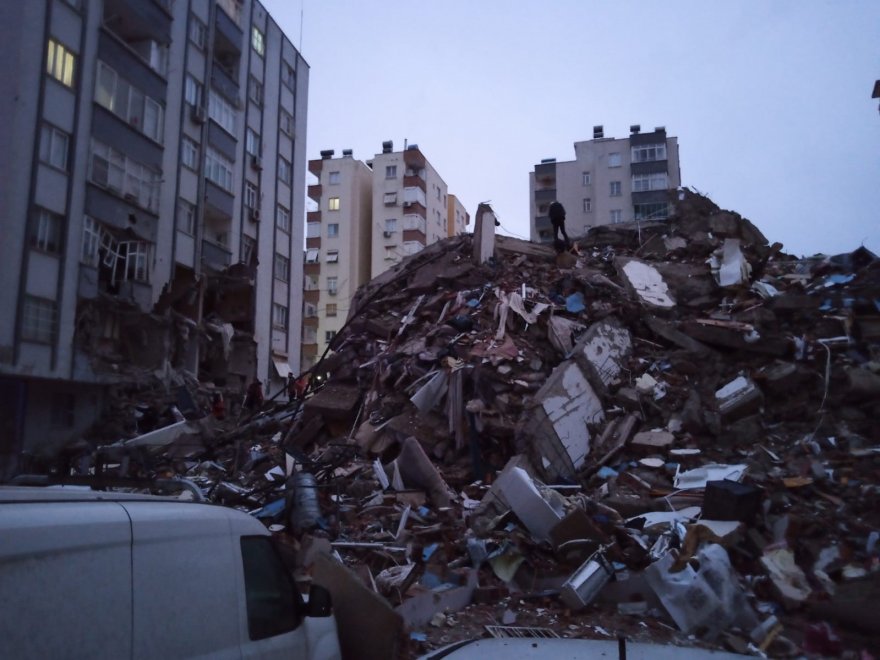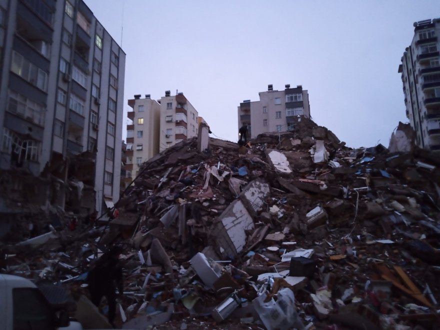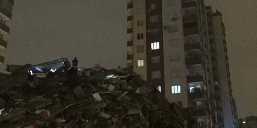 Sabaha karşı meydana gelen depremde Çukurova ilçesine bağlı Güzelyalı Mahallesinde 14 katlı bina tamamen çöktü.