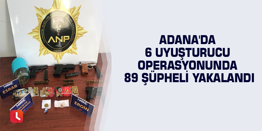 Adana'da 6 ayrı operasyonda 89 zanlı gözaltına alınırken, çok miktarda uyuşturucu ele geçirildi.