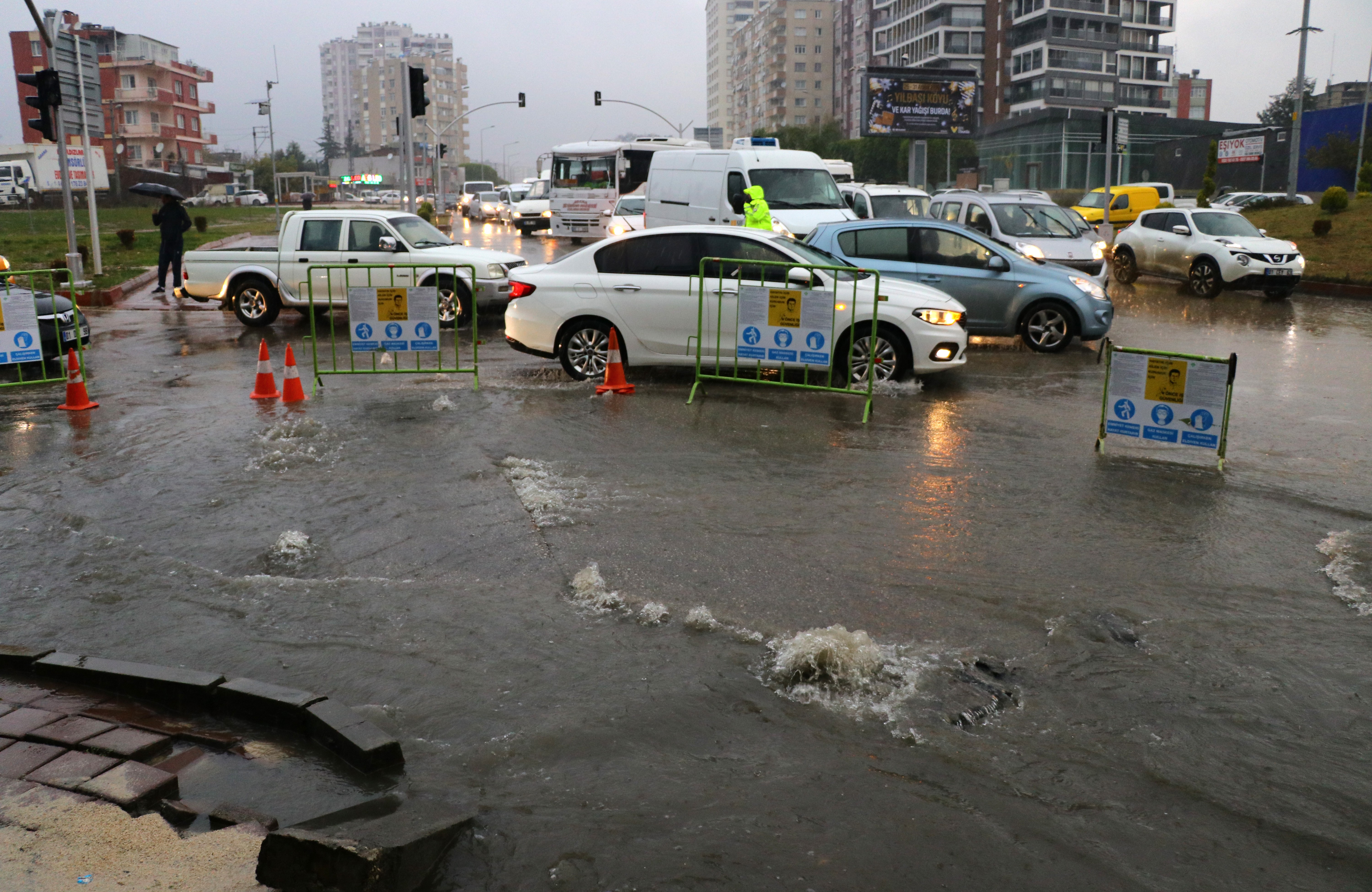 Adana’da şiddetli yağmur nedeniyle eğitime 1 gün ara verildi. Öte yandan, kentteki bazı mahallelerdeki iş yerlerini su bastı.