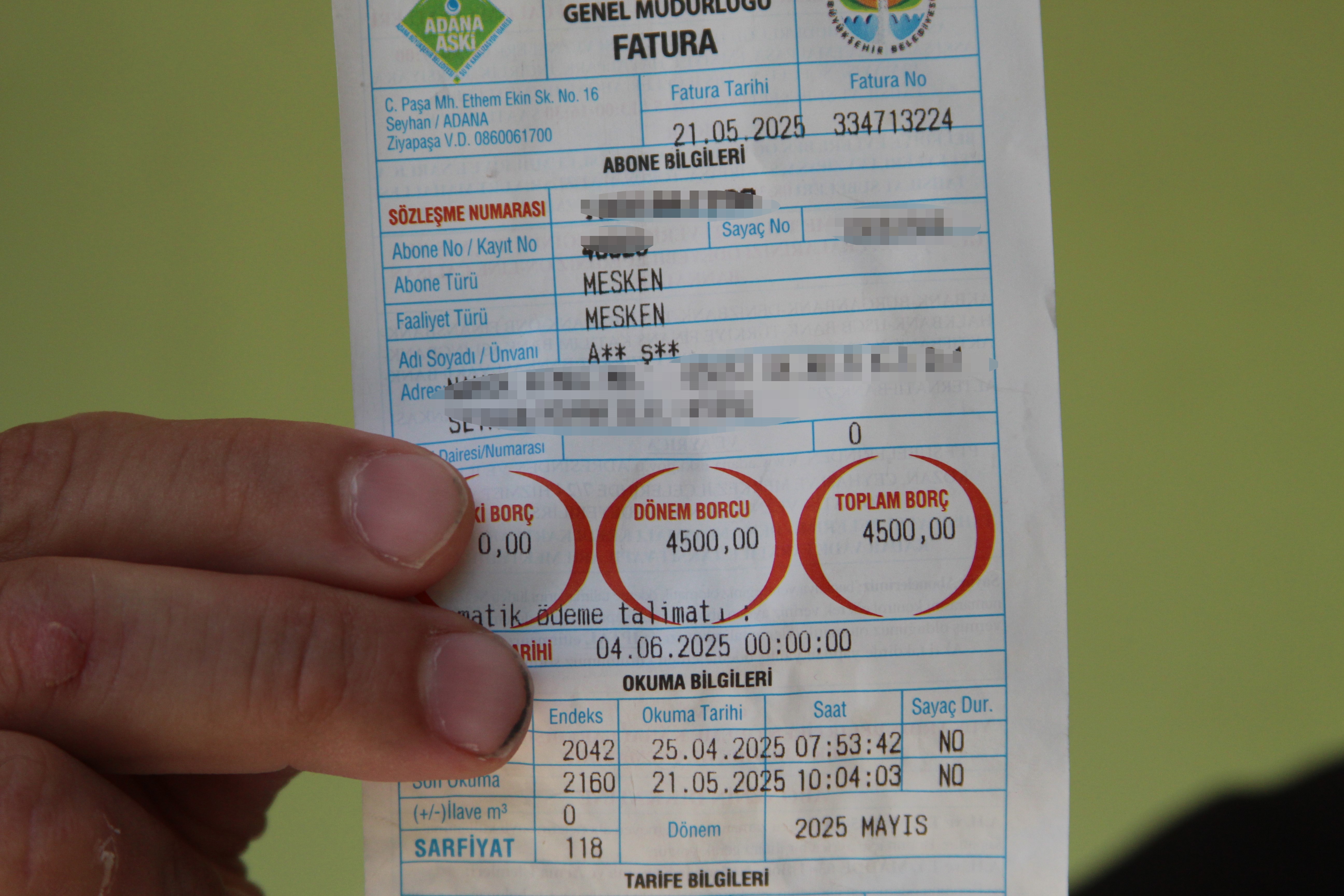 Adana'da eve 4 bin 500 TL su faturası geldi: "Havuzum olsa böyle bir fatura gelmezdi"