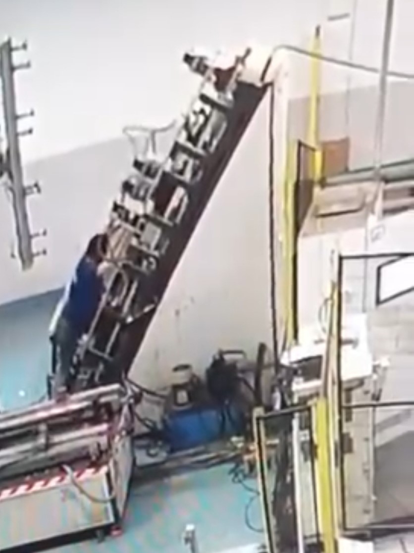 Adana'nın Sarıçam ilçesinde, organize saniyede çalışan bir işçinin sırtına makine saplandı. Ağır yaralanan işçinin o anları saniye saniye görüntülendi.