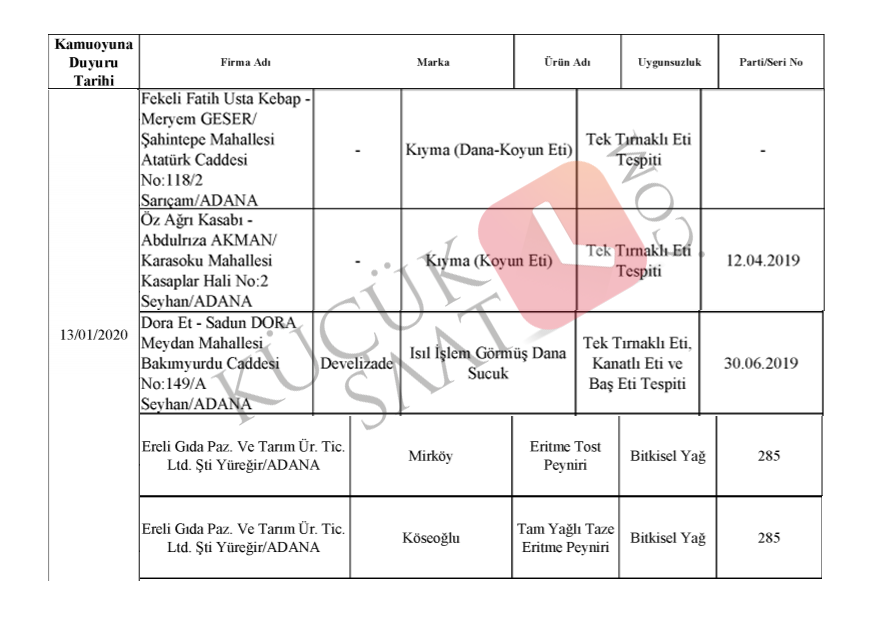Buna göre Adana'da bakanlığın açıkladığı listede yer alan ve insan sağlığıyla oynayan o firmalar: