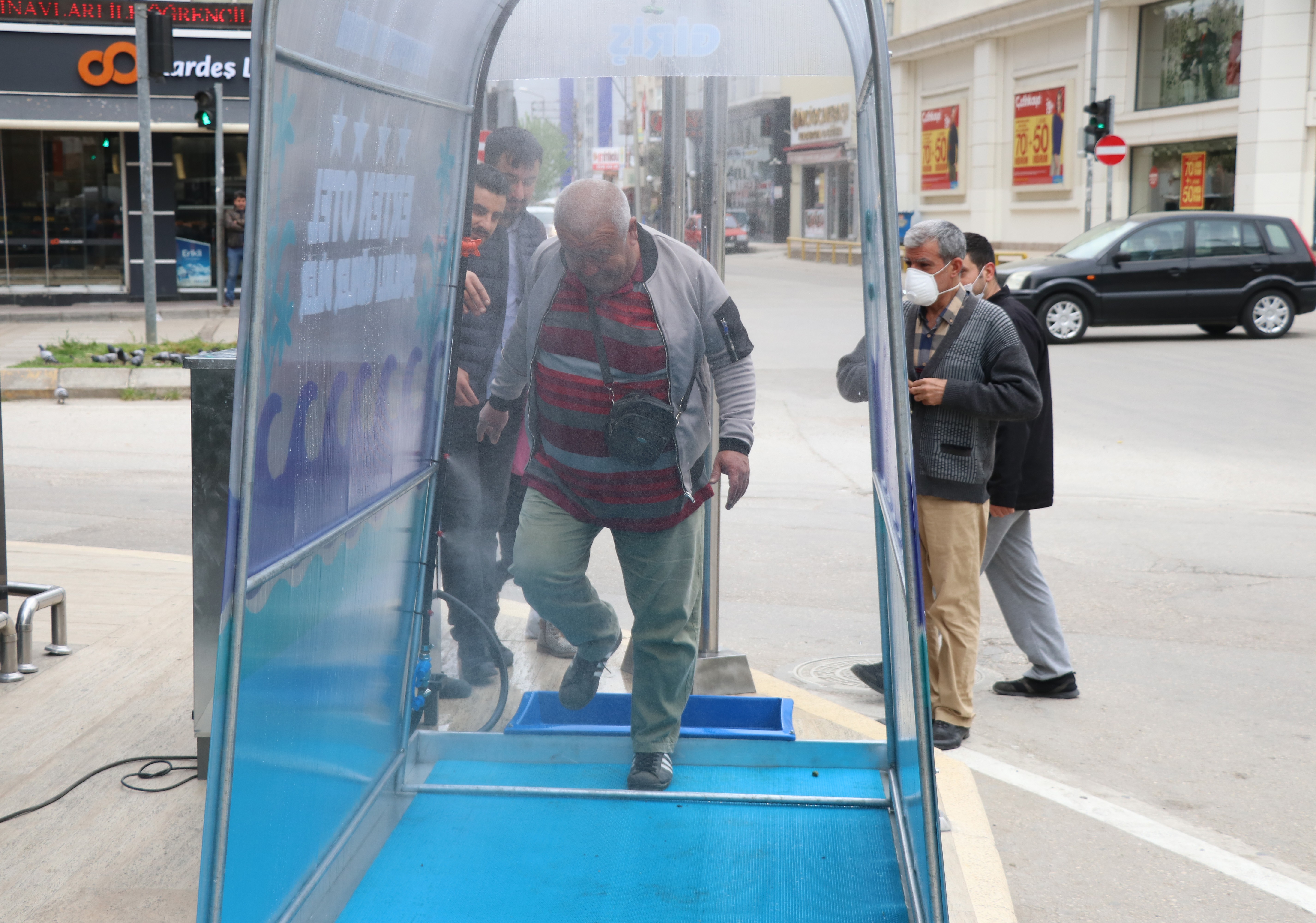 Dezenfektan tünelini üreten firmanın sahibi Uğur Erbil ise, “Bu tünelin milletimize hayırlı olması için bedelsiz bir şekilde burada halkımıza davete açtık. Halkımız buradan geçsin. Bu virüsten biran önce kurtulmamızı diliyorum” ifadelerini kullandı.