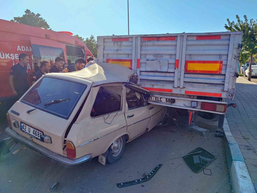 Adana’da otomobil kamyona çarptı: 1 yaralı