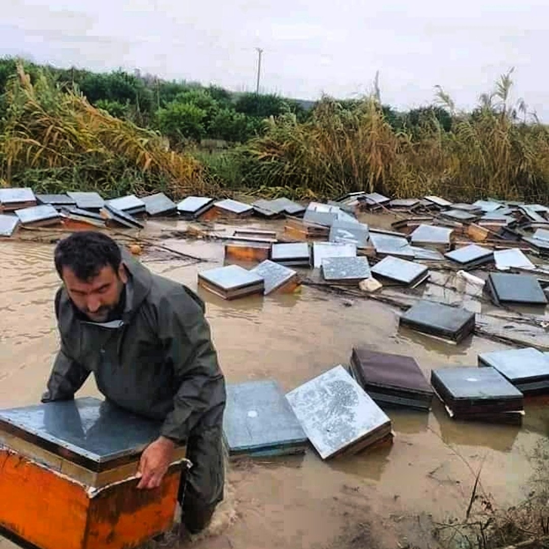 Geldiğimizde kovanları su basmıştı, sular 2 metreye kadar yükselmişti, o gece hiçbirimiz suyun içine giremedik. Bu bölgede bulunan bütün arıcılarımız aynı yerde değil aralarında 2-3 kilometre mesafe var” diye konuştu.