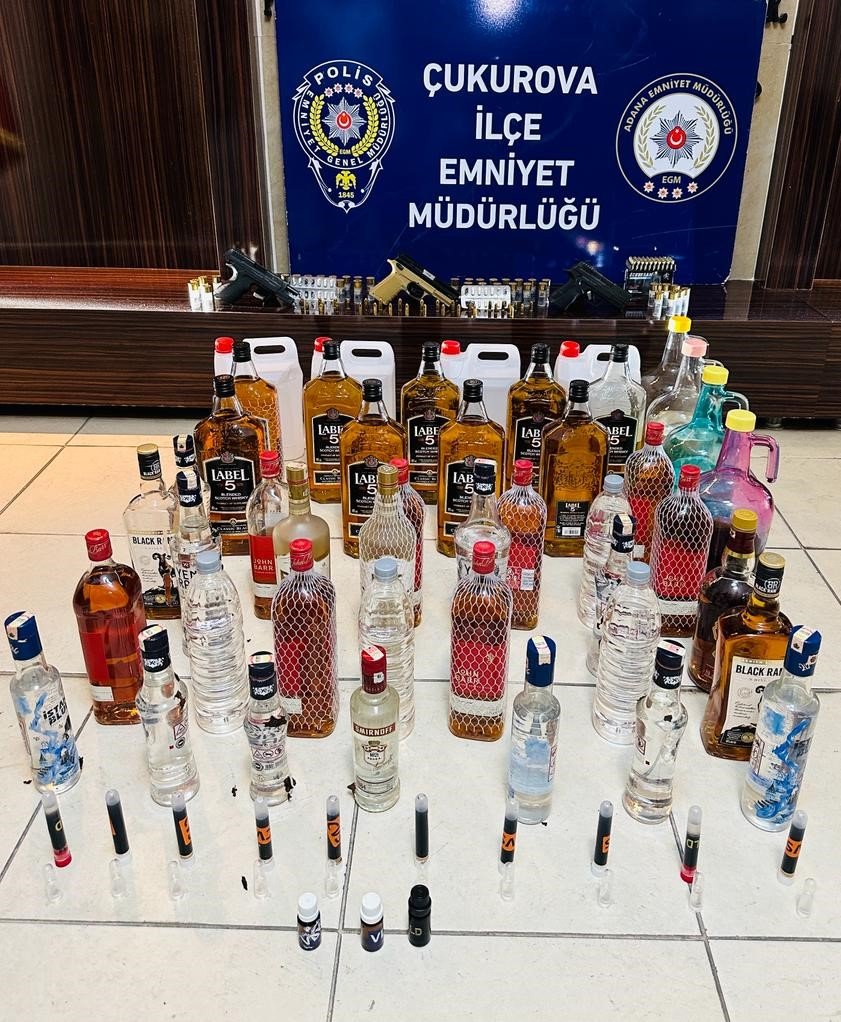 Adana’da silah, etil alkol ve kaçak alkol ele geçirildi
