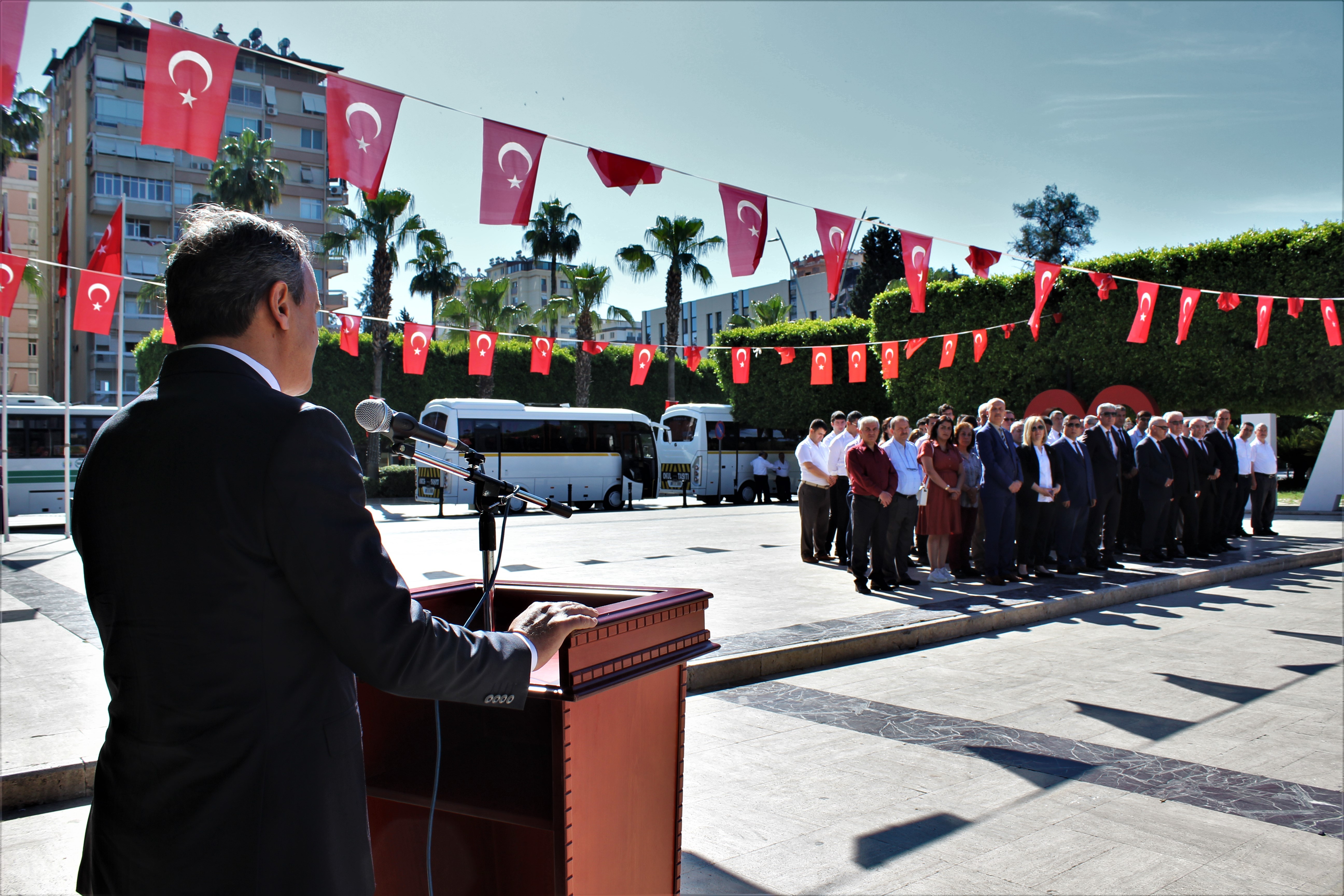 Adana’da Sosyal Güvenlik Haftası kapsamında Atatürk Anıtına çelenk sunuldu.