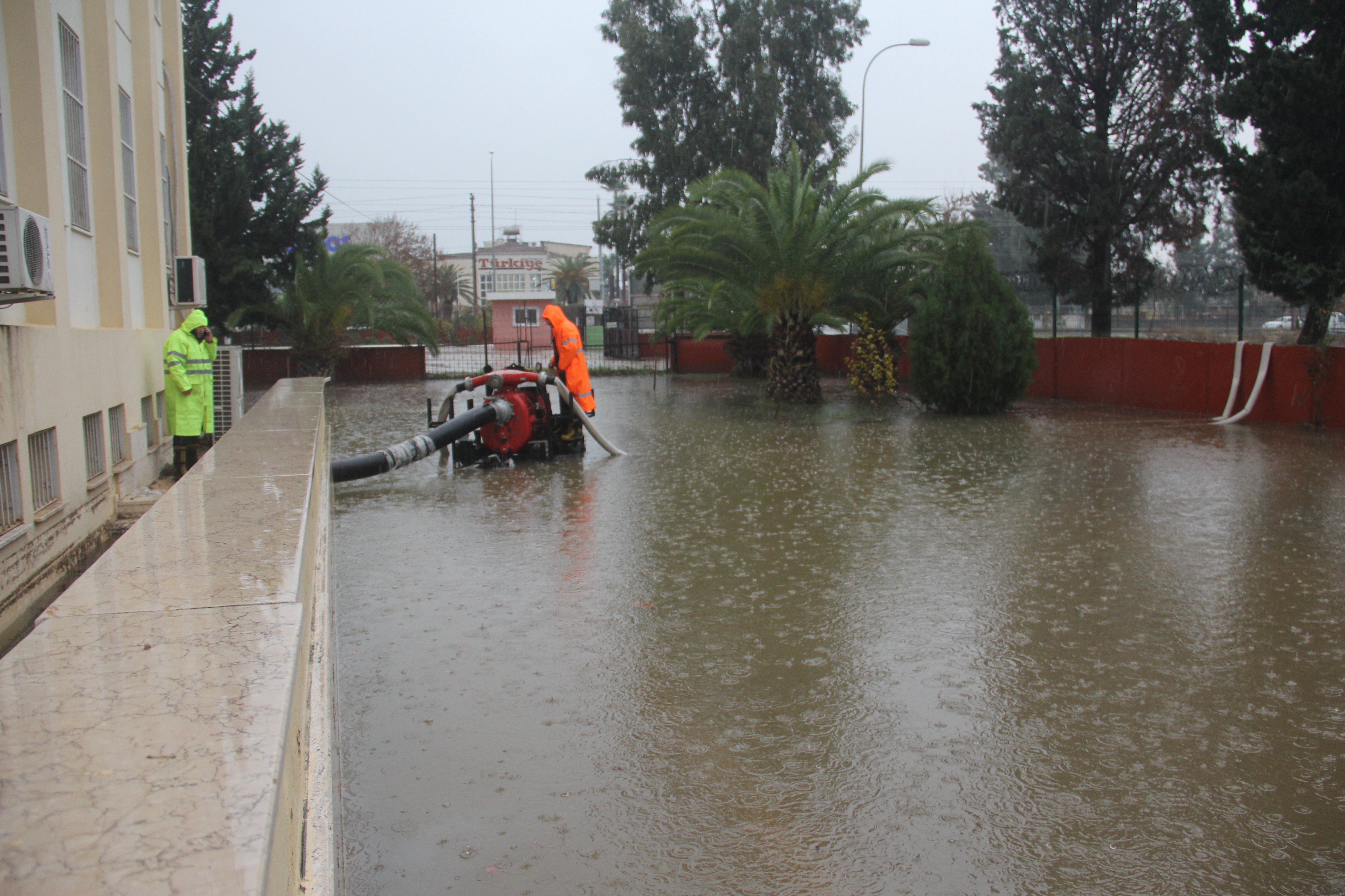Yağmurun bugün de devam etmesi nedeniyle tatil edilen okulların bahçe ve bodrum katlarının su ile dolu olduğu görüldü. Çamlıbel Şehit Kamil Yelmen Anadolu Lisesi bodrum katından tahliye edilen suyun tekrar bahçeye dolması dikkat çekti.