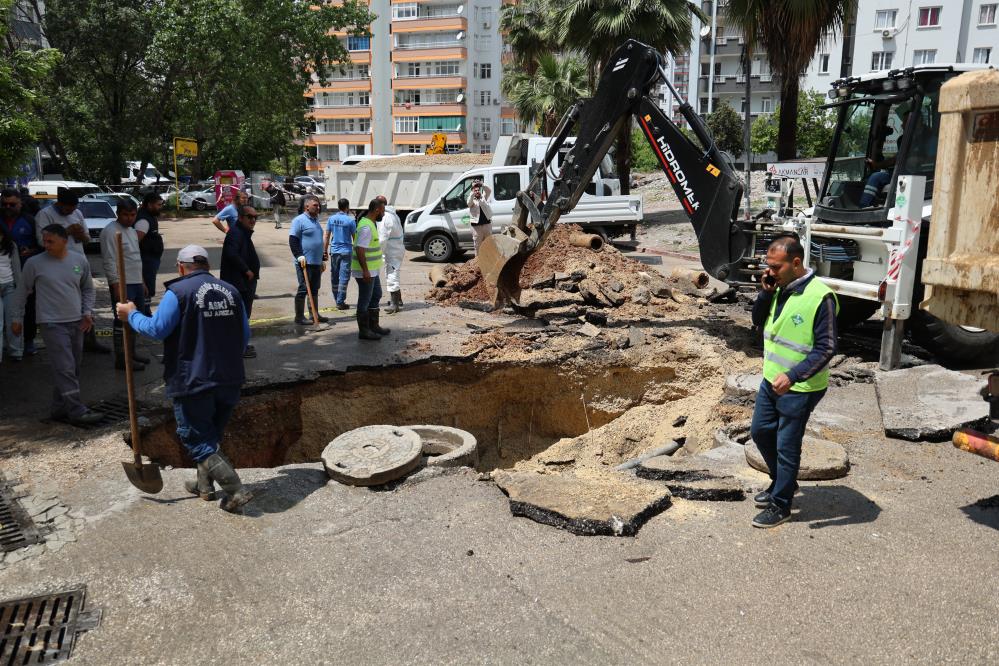 Bu sırada 01 AHV 019 plakalı ticari aracıyla giden Murat Özenir, yaptığı manevrayla çöken alana düşmekten son anda kurtuldu. Aracın tekeri ise çukurda kaldı. Çevredekilerin yardımıyla Özenir ve 14 yaşındaki oğlu araçtan çıkartıldı. Polis ekipleri, çevrede güvenlik önlemi alırken tekeri çukura düşen araç çekiciyle kurtarıldı.