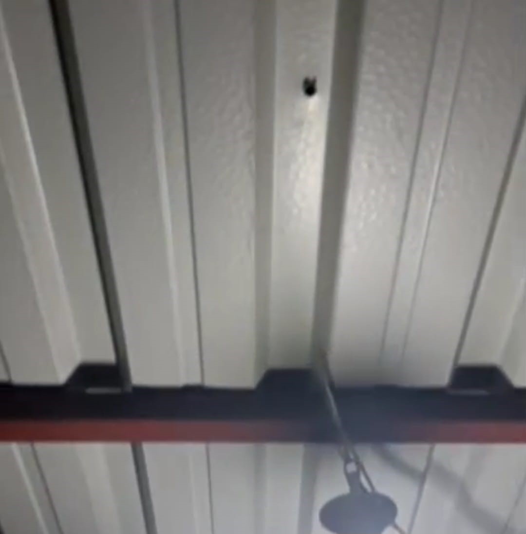 5 kişilik ailesi ve yakınlarıyla oturdukları sırada olayın yaşandığını belirten Ahmet Yiğenoğlu, merminin çinkoyu delip düştüğünü söyledi.