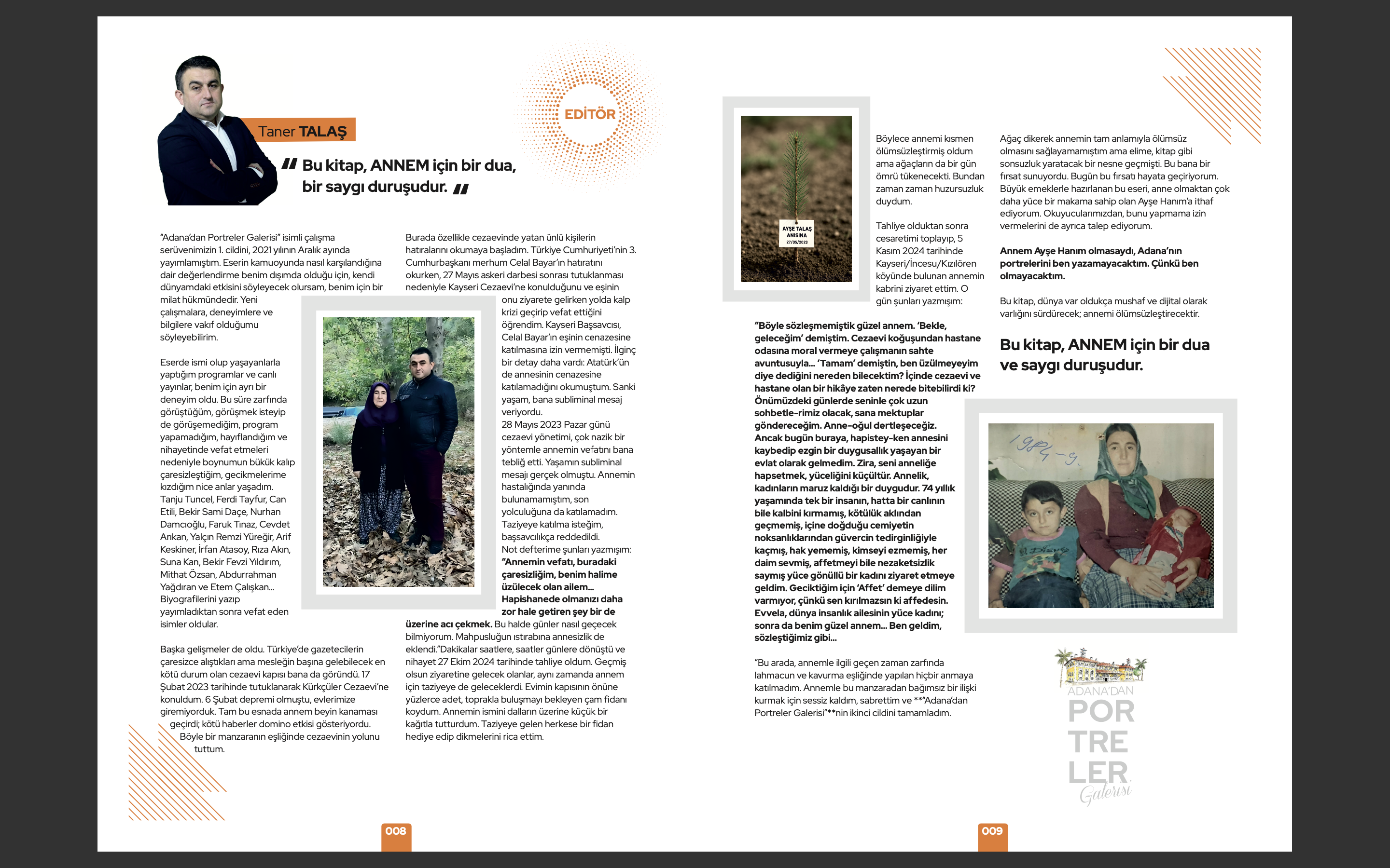 Adana’dan Portreler Galerisi’nin 2. cildi yayınlandı. Taner Talaş; “ Bu kitap, ANNEM için bir dua, bir saygı duruşudur”