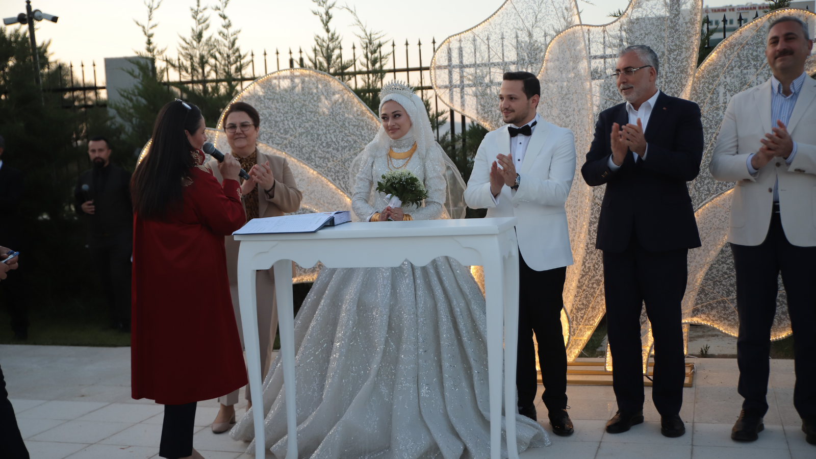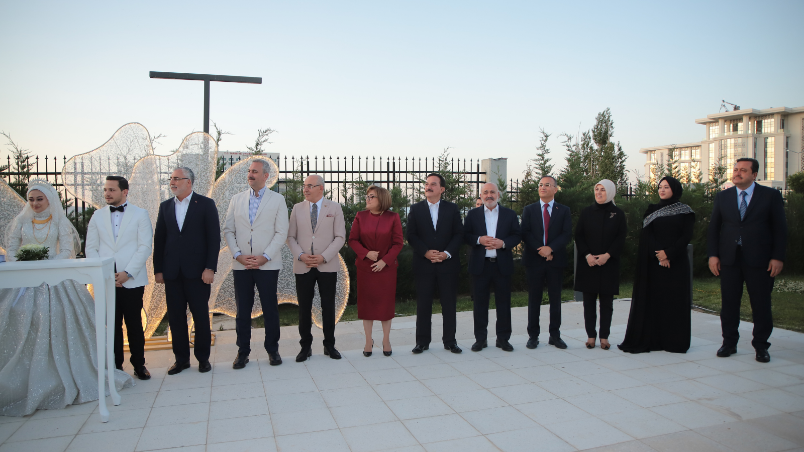 Genç çiftlerin nikah şahitliğini Çalışma ve Sosyal Güvenlik Bakanı Vedat Işıkhan başta olmak üzere eski bakanlar büyükelçiler ve bürokratlar yaptı.