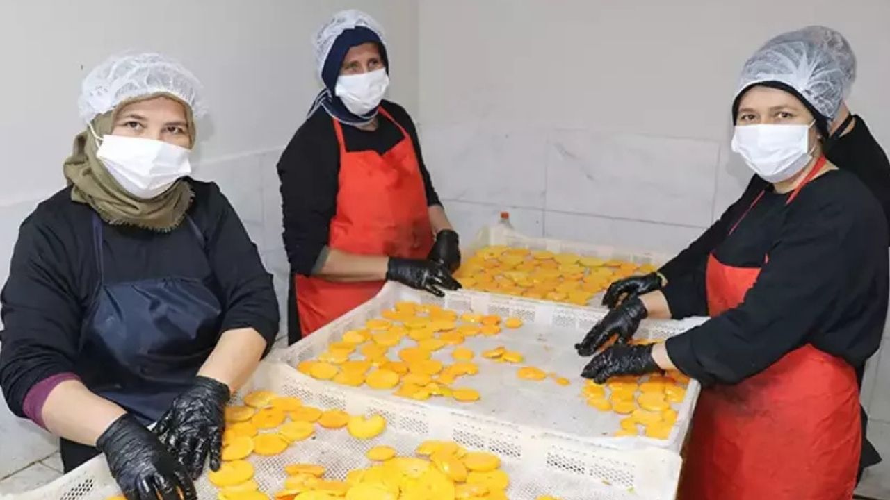 Sözleşmeli memuriyetten ayrıldıktan sonra KOSGEB desteğiyle meyve kurutma tesisi kuran Halime Büyükgüzel Saçıkaralı, bugün 30 kişilik ekibiyle 70 ton üretime ulaştı ve Kanada’ya ihracat yapmaya başladı.