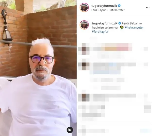 Tuğçe Tayfur, "Hatıran Yeter" şarkısını eklediği fotoğrafa "Ferdi Baba'nın hepinize selamı var" notunu ekledi.