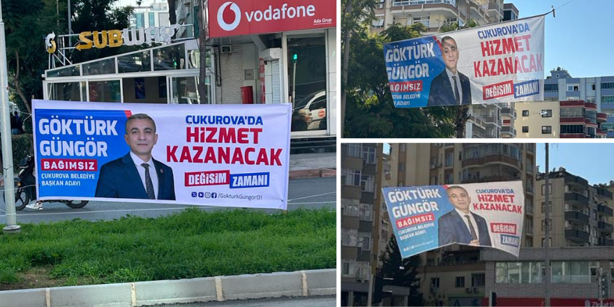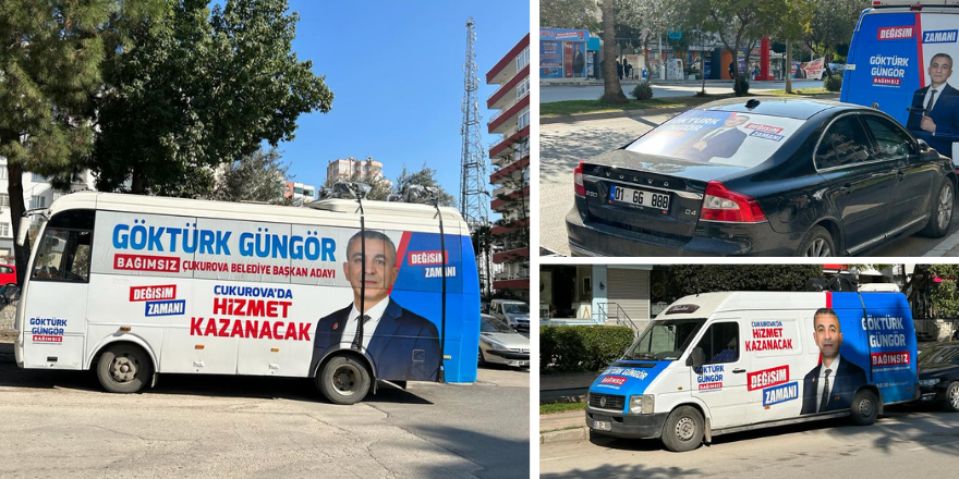 Muhtarlığı tercih etmeyip herhangi bir partiden de aday olmayan Göktürk Güngör, bağımsız Çukurova Belediye Başkan Adayı oldu. Diğer partilerin adaylarının çok üzerinde bir seçim çalışmasına imza atan Güngör, tüm ilçeyi afişlerle donattı. Bunun yanında kalabalık bir ekip kuran Güngör, minibüs, midibüs, otobüs, hafif ticari araçlar, binek araçlar ve lüks özel araçlar giydirerek Çukurova sokaklarında bütün gün tanıtımını yapıyor.