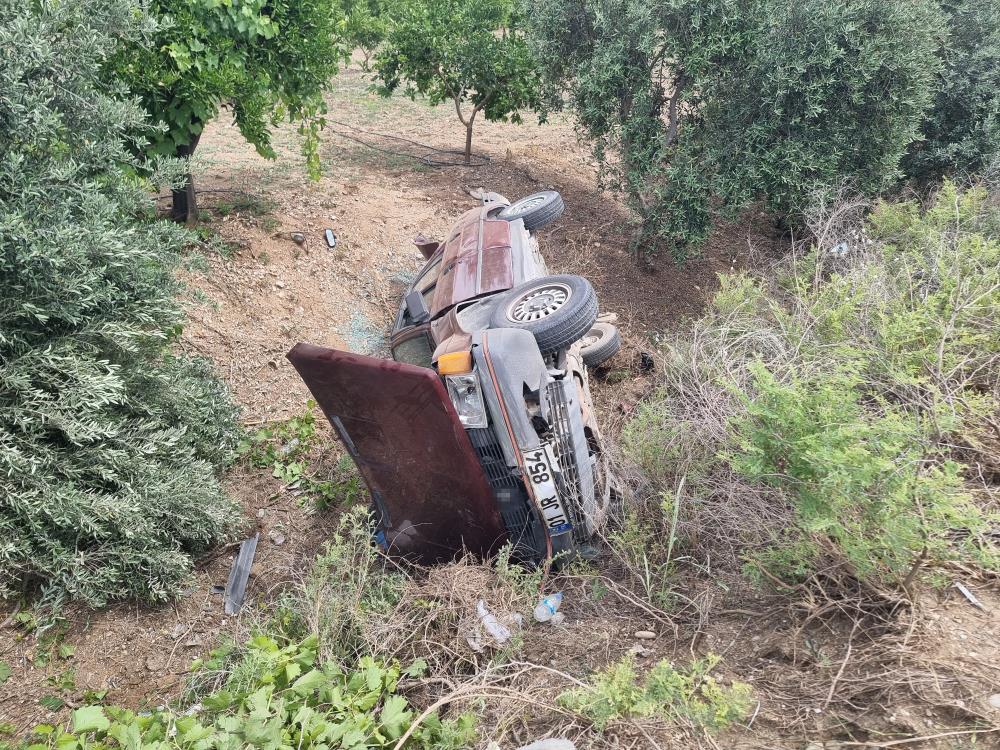 Adana'nın Kozan ilçesinde meydana gelen trafik kazasında takla atan otomobil sürücüsü, zeytin ağacının hızı kesmesi ve emniyet kemerinin takılı olmasıyla yara almadan kurtuldu.