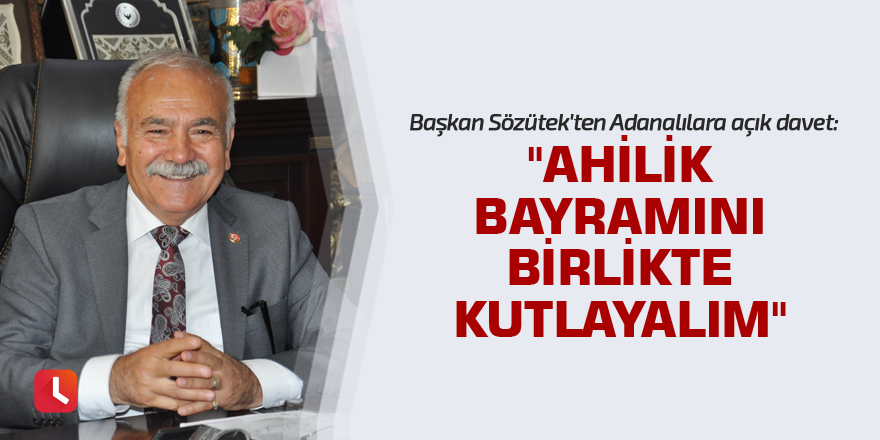 Esnaftan da Ahilik Haftası kutlamalarına sahip çıkmasını isteyen Başkan Sözütek, "Ahilik Haftası’nın esnaf bayramına yakışır şekilde gerçekleştirilmesi için Adana’da hizmet veren tüm esnaf ve sanatkârlar odası başkanları, yönetim kurulu üyeleri ve üyelerimizden duyarlılık bekliyorum. Bu vesile ile Ahilik Haftası ve Esnaf Bayramını kutluyor, basta esnaf ve sanatkarlarımız olmak üzere tüm Adanalıları etkinliklere katılmaya davet ediyorum" ifadelerini kullandı.