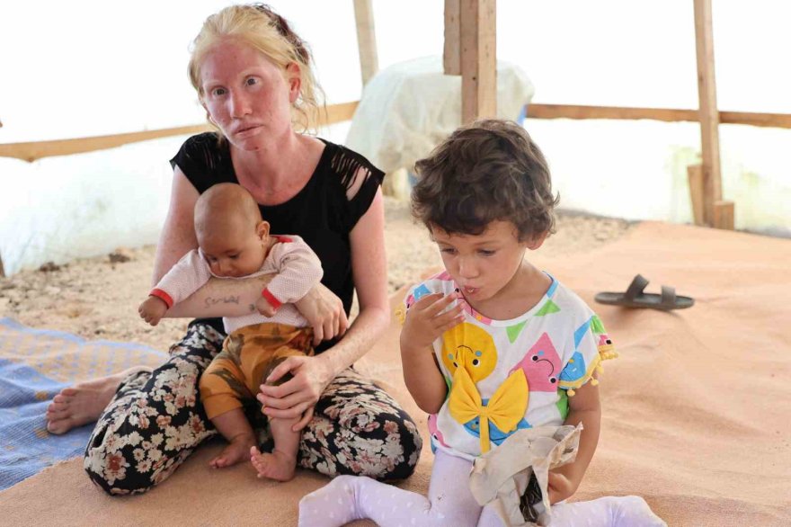 Adana'da "Albino" genç kadın 3 kız çocuğuyla birlikte kavurucu sıcaklarda çadırda kalarak yaşam mücadelesi veriyor.
