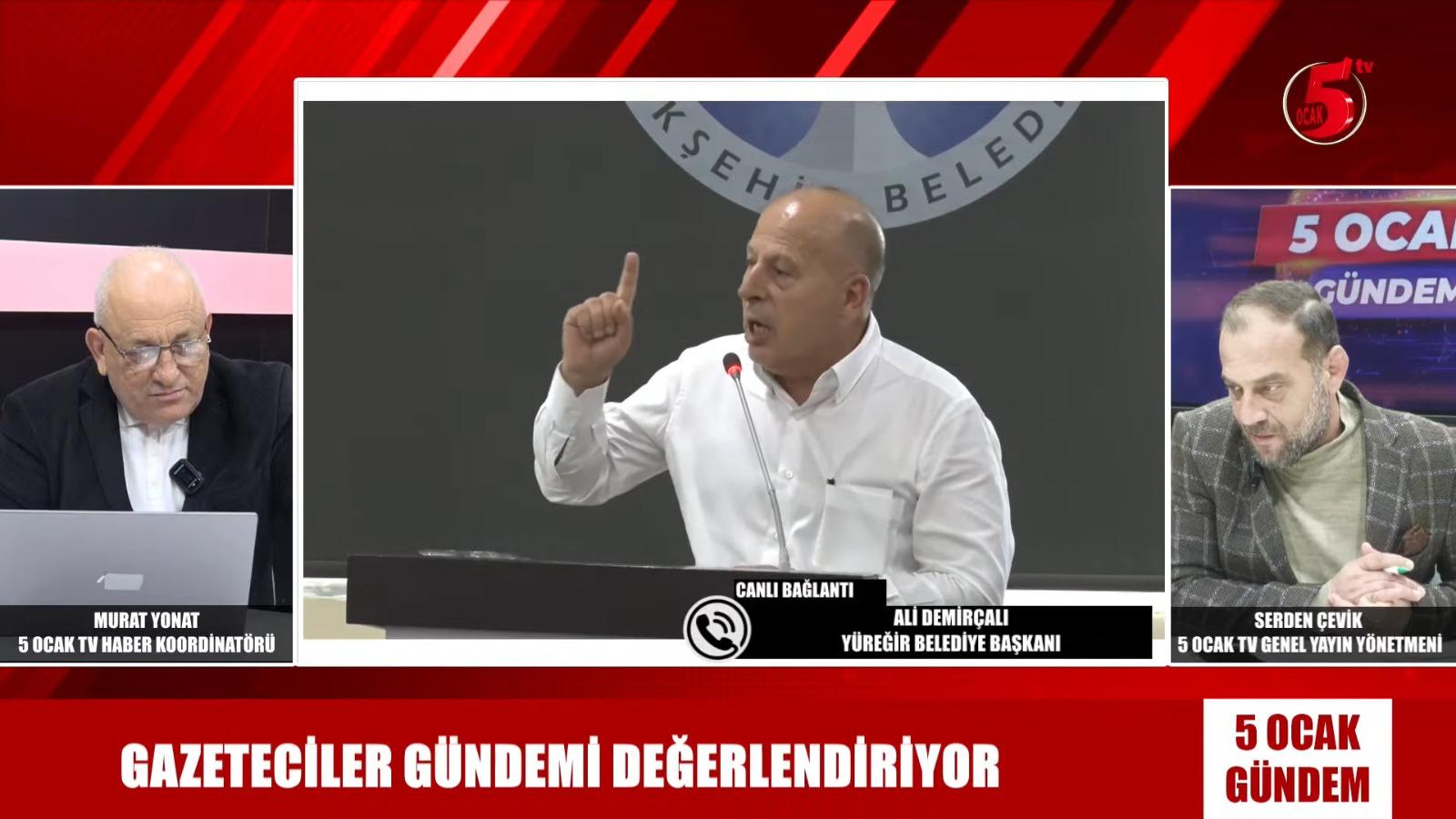 Yüreğir Belediye Başkanı Ali Demirçalı, meclis üyelerinin yayınladığı metne cevaben 5 Ocak Tv'de yayınlanan Murat Yonat ve Serden Çevik'in sunduğu 5 Ocak Gündem Programına bağlanarak konuya ilişkin açıklamalarda bulundu.