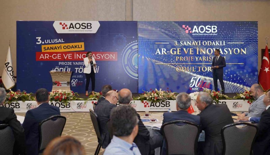 Değişimi ve sürekli yenilenmeyi destekleyen, yaşanabilir bir çevre, sürdürülebilir ekonomik gelişme ve Türkiye'nin rekabetçi gücüne katkı için AR-GE ve inovasyonu teşvik eden Adana Hacı Sabancı Organize Sanayi Bölgesi'nin (AOSB) 3. Ulusal Sanayi Odaklı AR-GE ve İnovasyon Proje Yarışması'nda dereceye giren projelerin sahiplerine düzenlenen törenle ödülleri verildi.