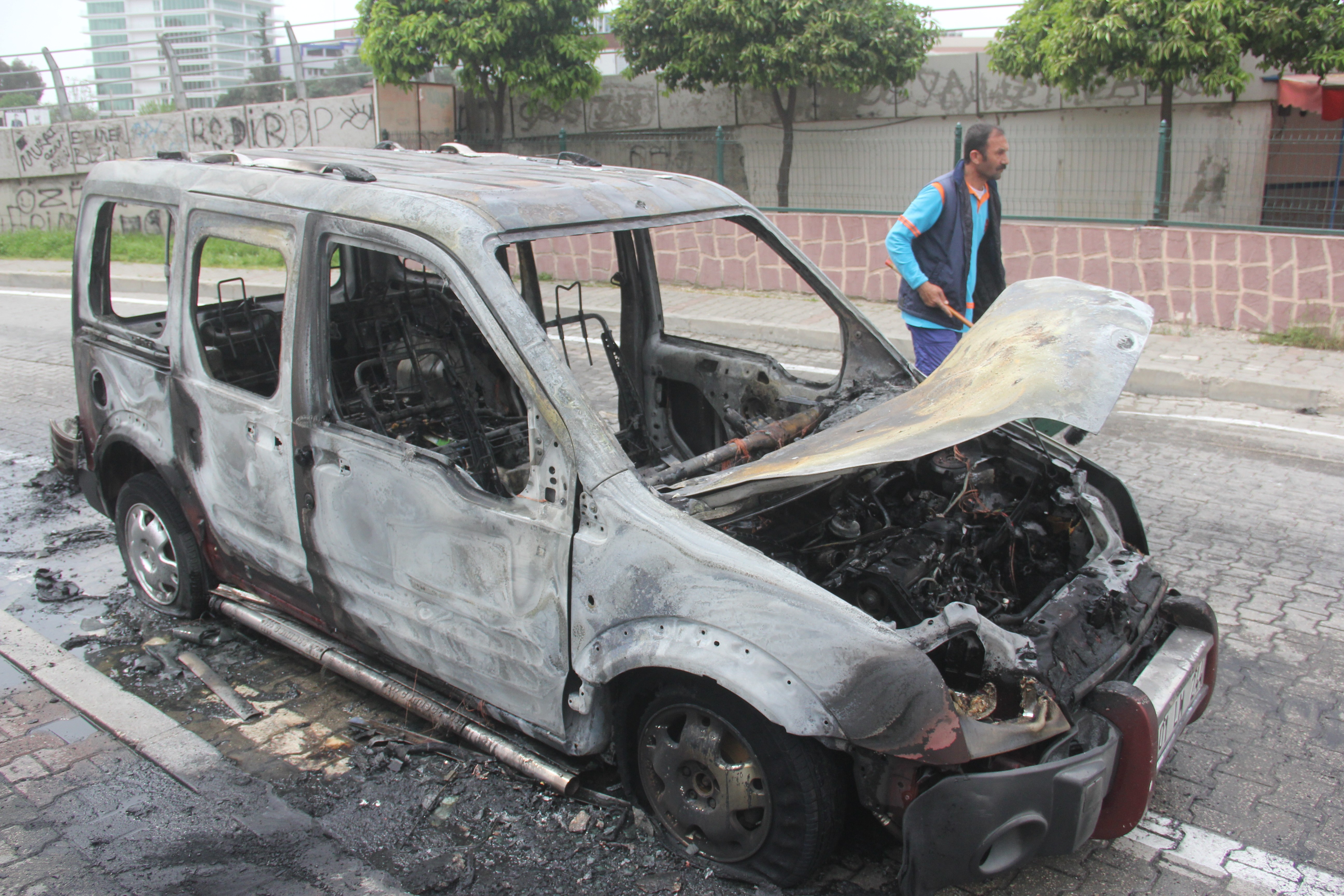 Bidenatar Çınarlı Mahallesine geldiği sırada aracın motor kısmından önce dumanlar çıktı, daha sonra ise birden aracı alevler sardı.
