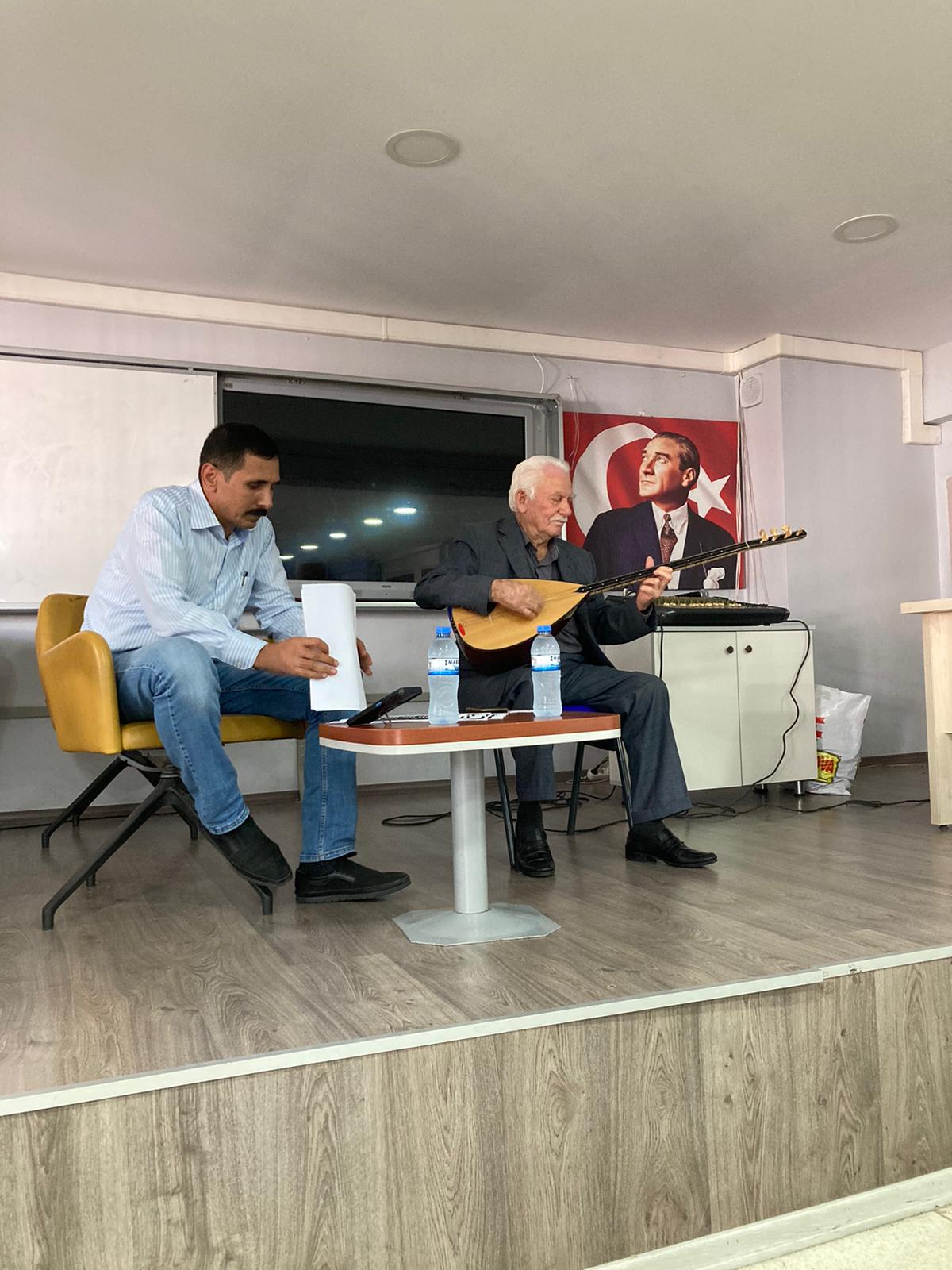 Öğrencilere kısa bir atışma örneği de sunulması isteğini de reddetmeyen konuklar, en büyük ilgiyi ve alkışı da bu bölümde aldılar. Turgut Bey’in usta aşığın karşısındaki performansına da şapka çıkarttık doğrusu. Abartma sanatına güzel bir örnek olan Kadirli’nin sembolü “Turp” şiiri de beni bu işin üstatlarından Kaygusuz Abdal’a kadar götürdü.