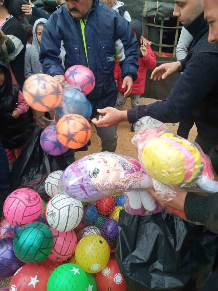 Alınan oyuncakları çocuklara hediye eden ekipler onların yüzünü bir nebzede olsa güldürdü.