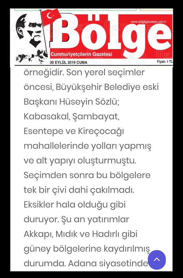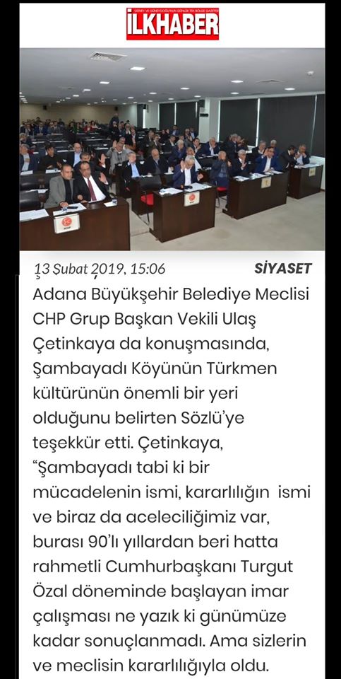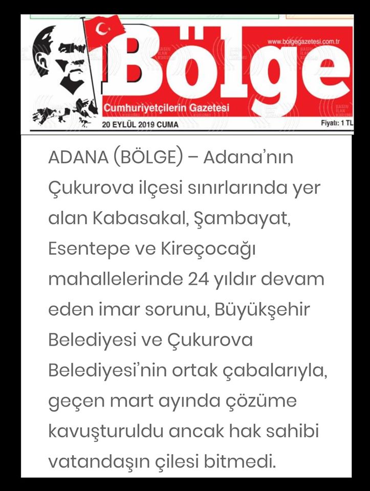 MHP Adana İl Başkanlığı'ndan yapılan açıklamada, "Çukurova ilçesi Şambayadı bölgesinde çeyrek asırdır binlerce vatandaşı mağdur eden imar ve tapu sorununun çözüme kavuşmuş olmasını tek başına sahiplenen, CHP Genel Başkanı Sayın Kemal Kılıçdaroğlu'nu dahi davet edip, devletin verdiği tapuları kendileri veriyor gibi tapu dağıtım töreni düzenleyecek kadar siyasi rant hırsına kapılan Çukurova Belediye Başkanı Soner Çetin, halkın parasıyla on binlerce lira harcayarak duvar ilanlarıyla, reklamlarla halkı kandırmayı bırakmalıdır. Söz konusu sorun, 2014-2019 döneminde büyükşehir belediyesi, valilik, Çevre ve Şehircilik Bakanlığı ile bağlı kurumların da katkılarıyla çözülmüştür. "Söz uçar, yazı kalır" diyoruz ve basın arşivlerini bu vesileyle kamuoyunun dikkatlerine sunuyoruz." denildi.