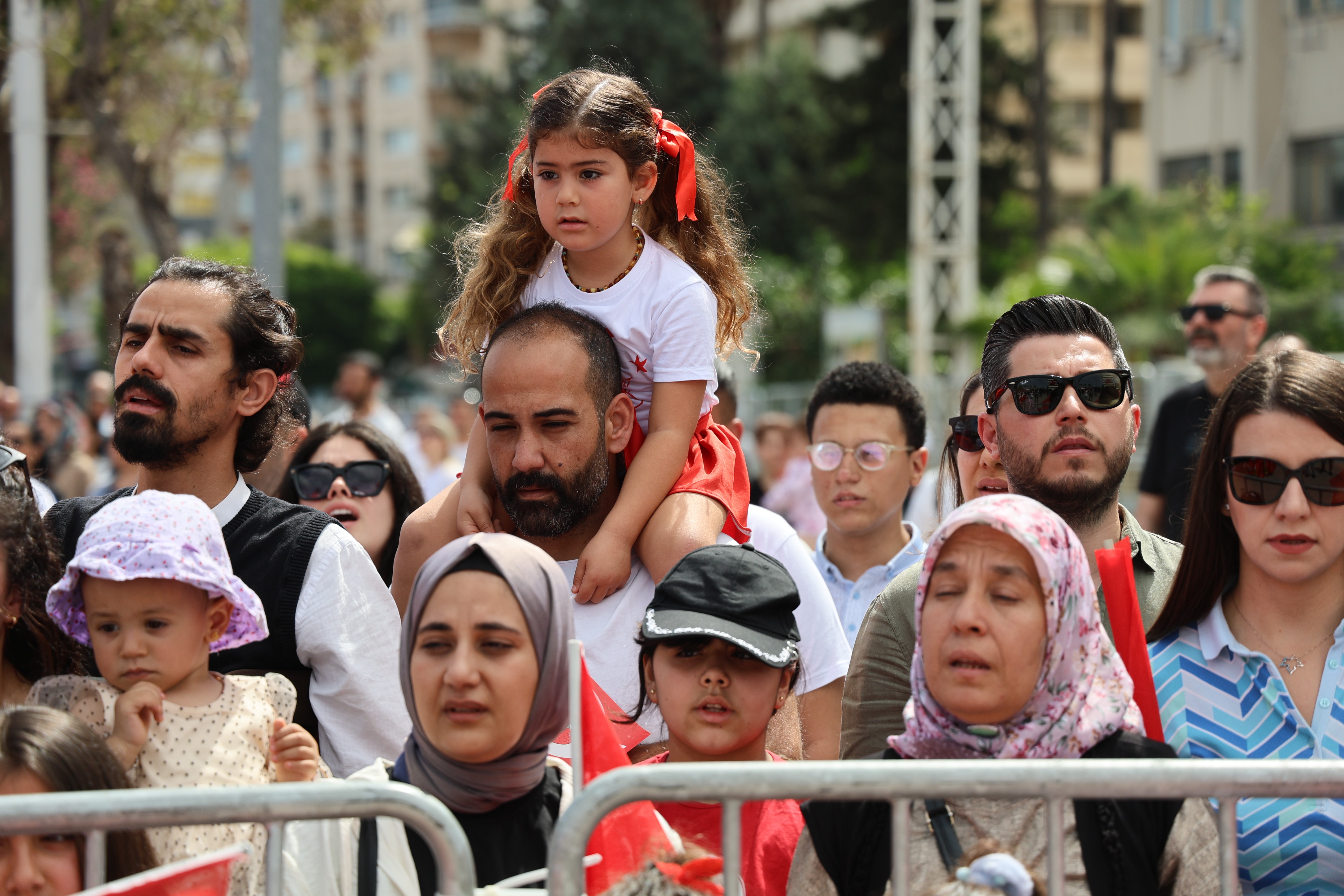 23 Nisan Ulusal Egemenlik ve Çocuk Bayramı Adana'da coşkuyla kutlandı. Törene katılan küçük çocuklar, babaların omzuna çıkıp töreni izledi.