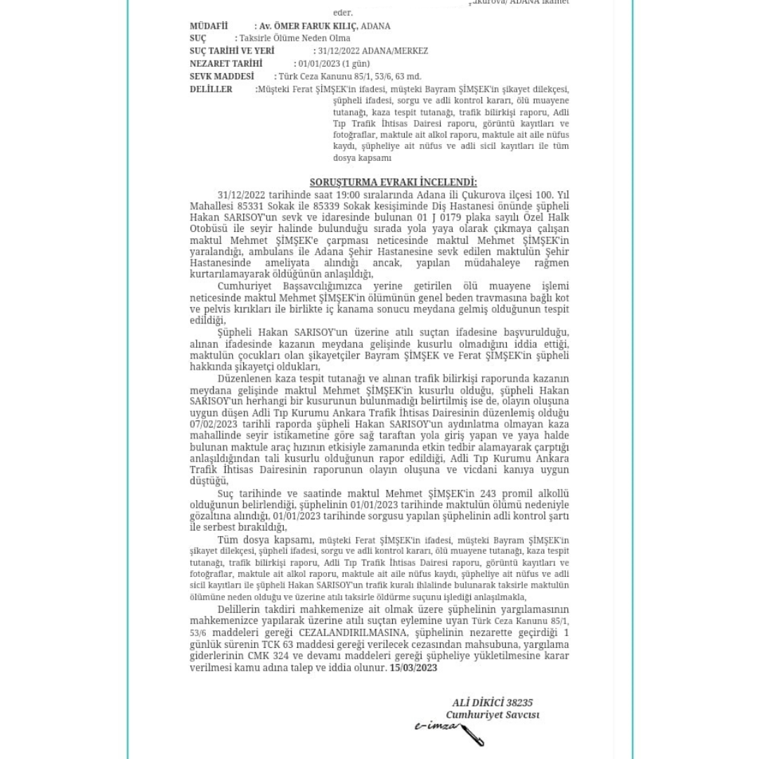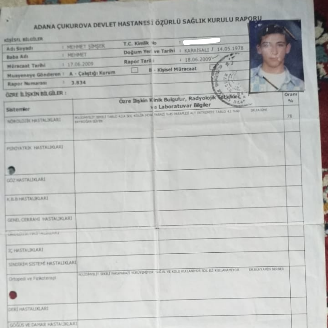 Adana’da yaşayan ve %78 ağır engelli raporu bulunan Mehmet Şimşek, babasının ölümüne neden olan kazayla ilgili dava sürecinin hızlandırılmasını talep ediyor.