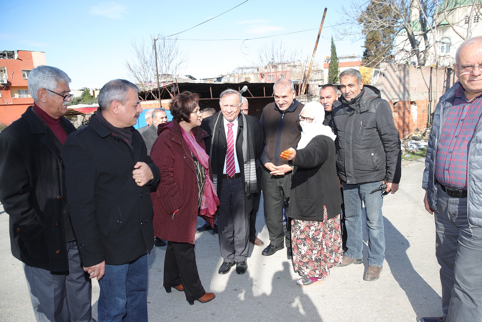 Toplantı bitiminden sonra Başkan Akay, bölge muhtarlarıyla birlikte mahallelerde inceleme yaptı.