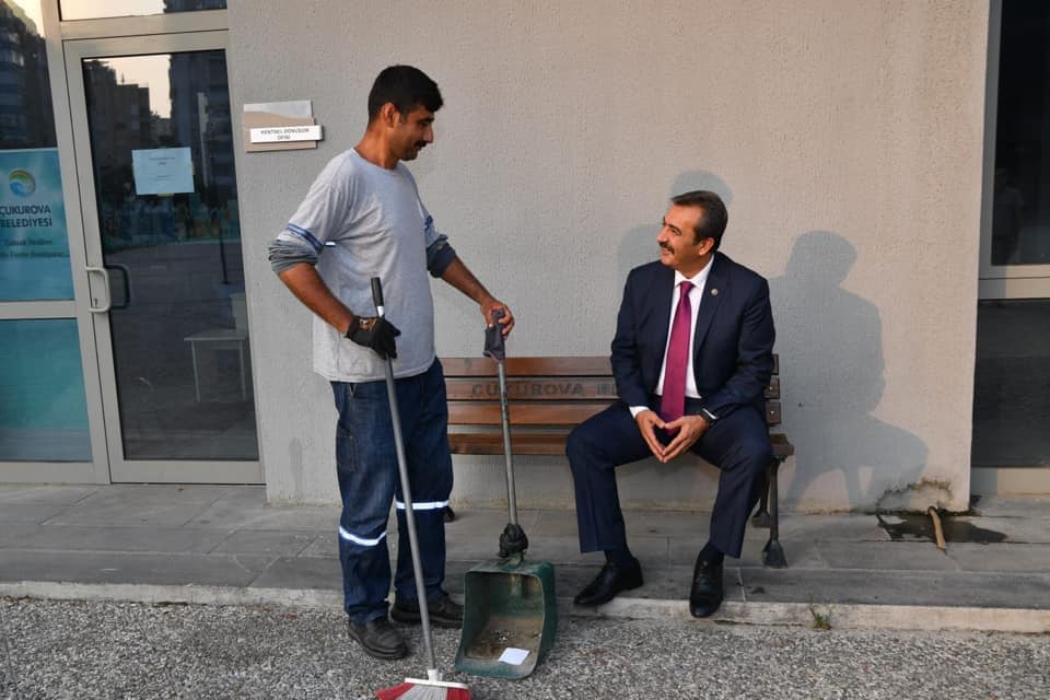 Mesaiye erken başlayan Çukurova Belediye Başkanı Soner Çetin, belediye hizmet binasında teftişe çıktı, kendisi gibi erken mesai yapan personellerle sohbet etti.