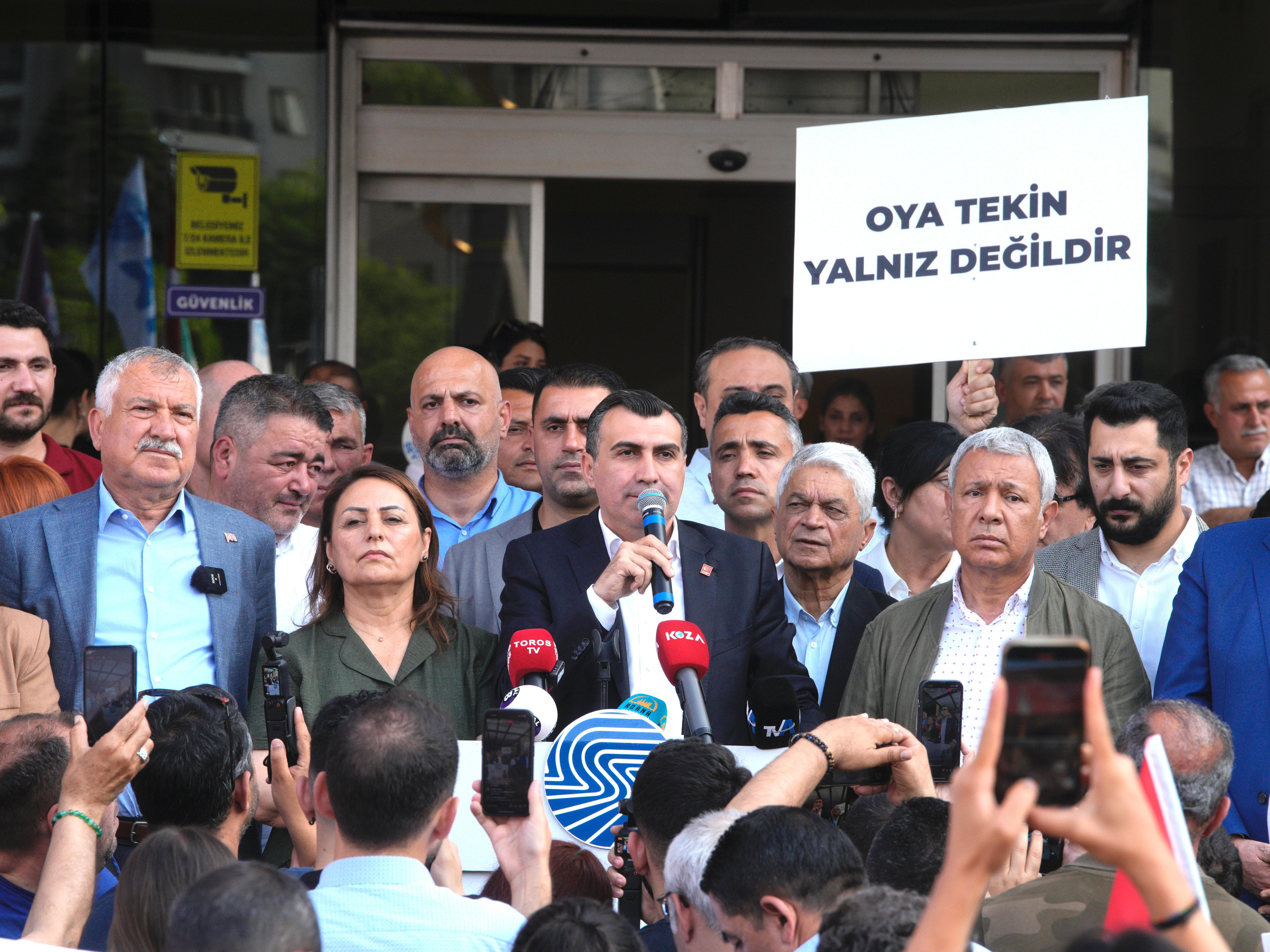 CHP Adana İl Örgütü İl Başkanı Doç. Dr. Anıl Tanburoğlu öncülüğünde geçtiğimiz gün tutuklanan Seyhan Belediye Başkanı Oya Tekin ve Ceyhan Belediye Başkanı Kadir Aydar’a destek amacıyla Seyhan Belediyesi önünde geniş katılımlı bir açıklama gerçekleştirdi.