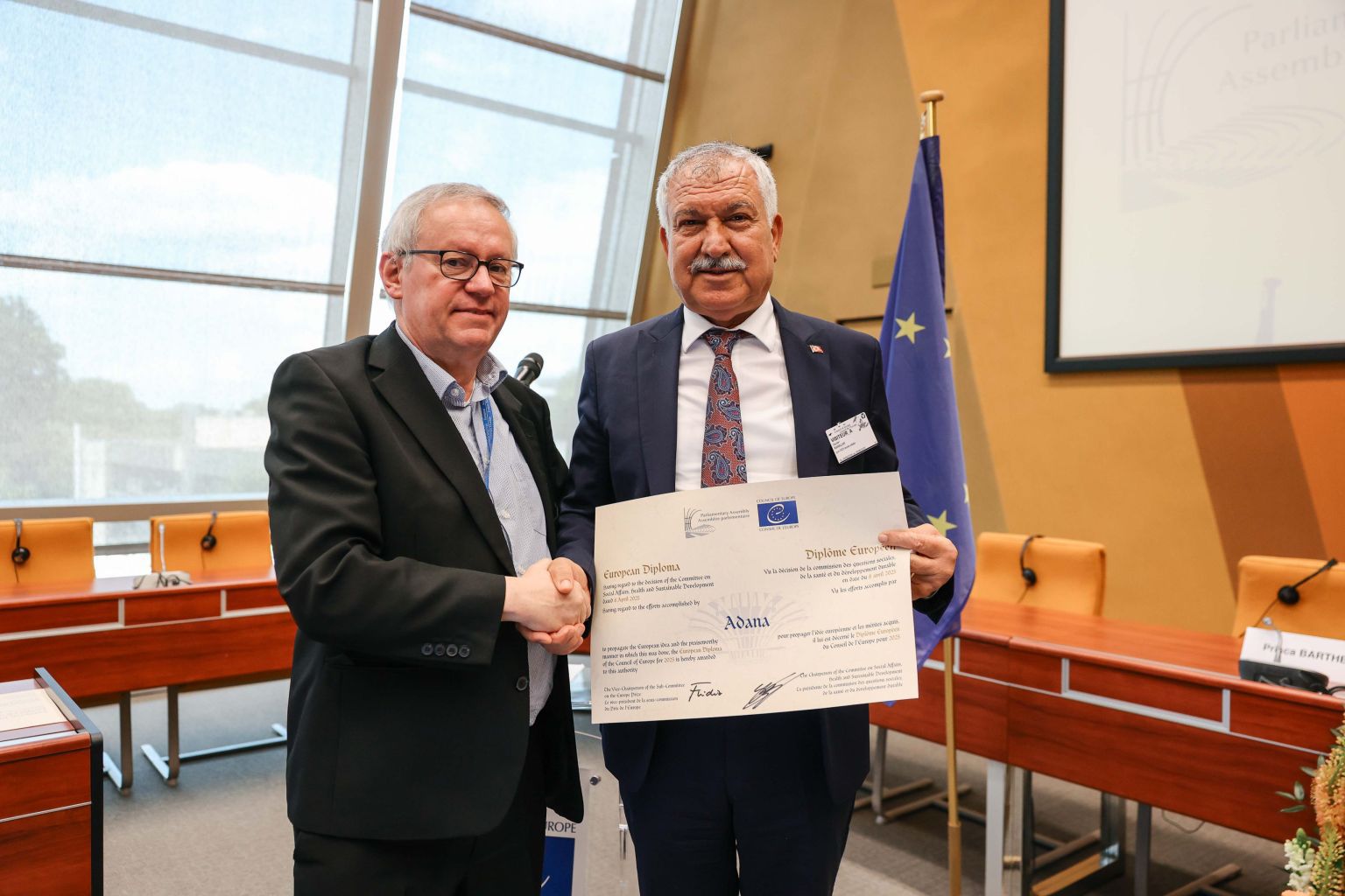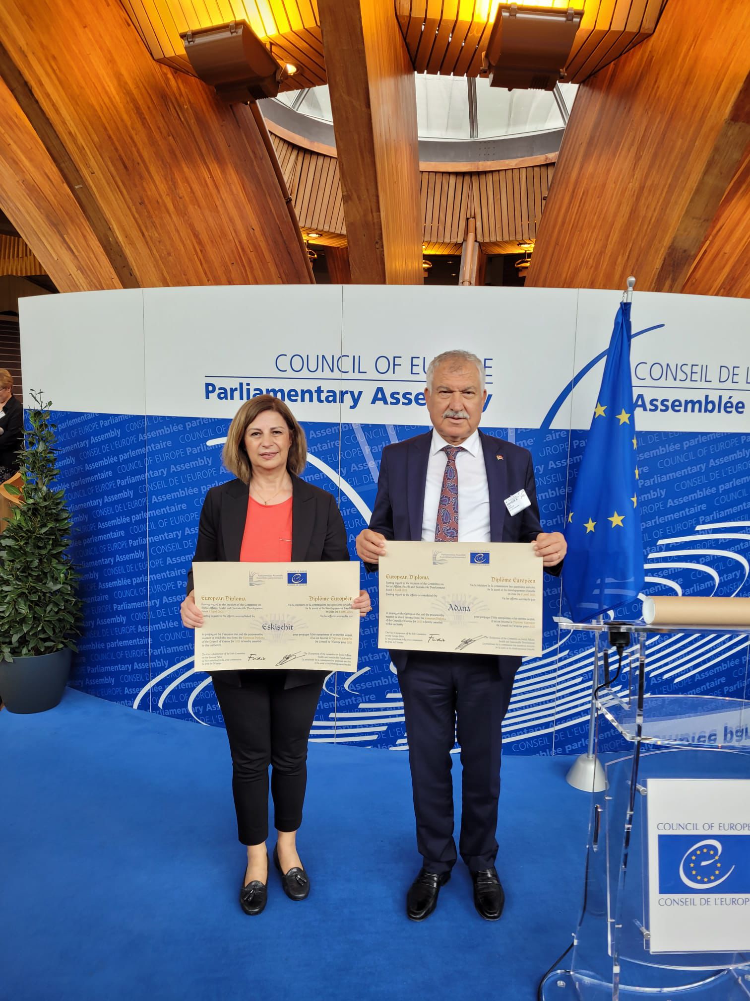 Avrupa Parlamenter Meclisi Avrupa Diploması Ödülü; Türkiye'den Adana Büyükşehir Belediyesi ve Eskişehir Büyükşehir Belediyesi'ne verildi. Başkan Zeydan Karalar, katılımcılara Almanca hitap ederek, Adana'nın değerlerini anlattı, yerelden Avrupa'ya uzanan d