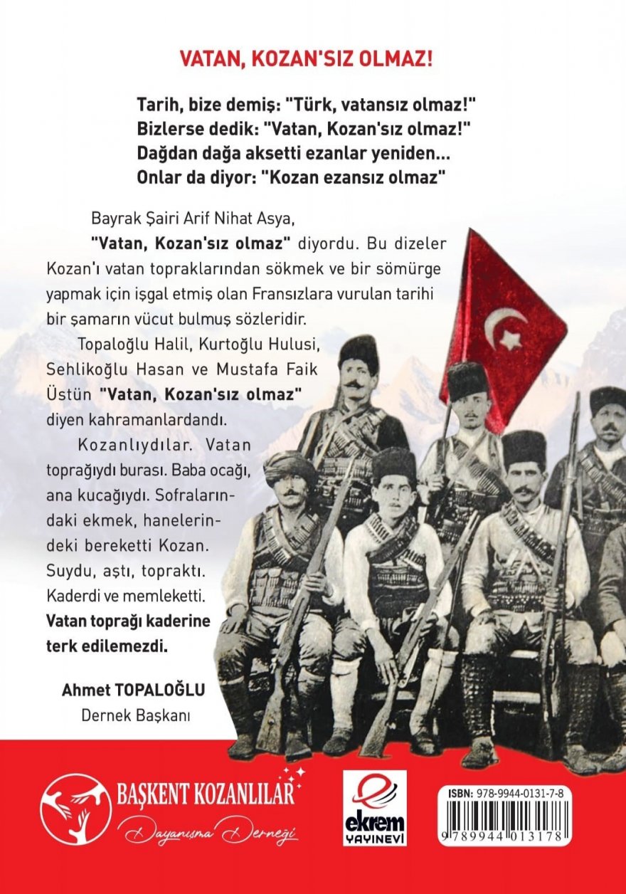 Kitap, İstiklal Madalyalı Milli Kahraman Halil Topaloğlu'nun torunu ve Başkent Kozanlılar Dernek Başkanı Ahmet Topaloğlu'nun danışmanlığında ve ana sponsorluğunda yayınlandı. Kozan'daki okullara, kütüphanelerine ve okumak isteyen Kozanlılara armağan edileceği bildiren Ahmet Topaloğlu kitapla ilgili olarak şunları söyledi: