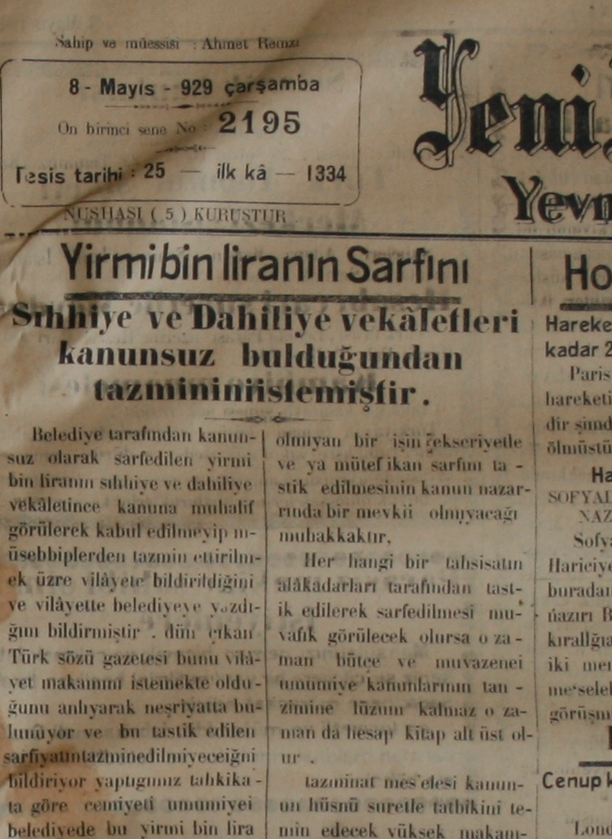 Bu usulsüzlük için, Şehir İdare Meclisi Valiliğe yazar, valilikte durumu İç İşleri Bakanlığına bildirip ne yapılması gerektiğini sorar...