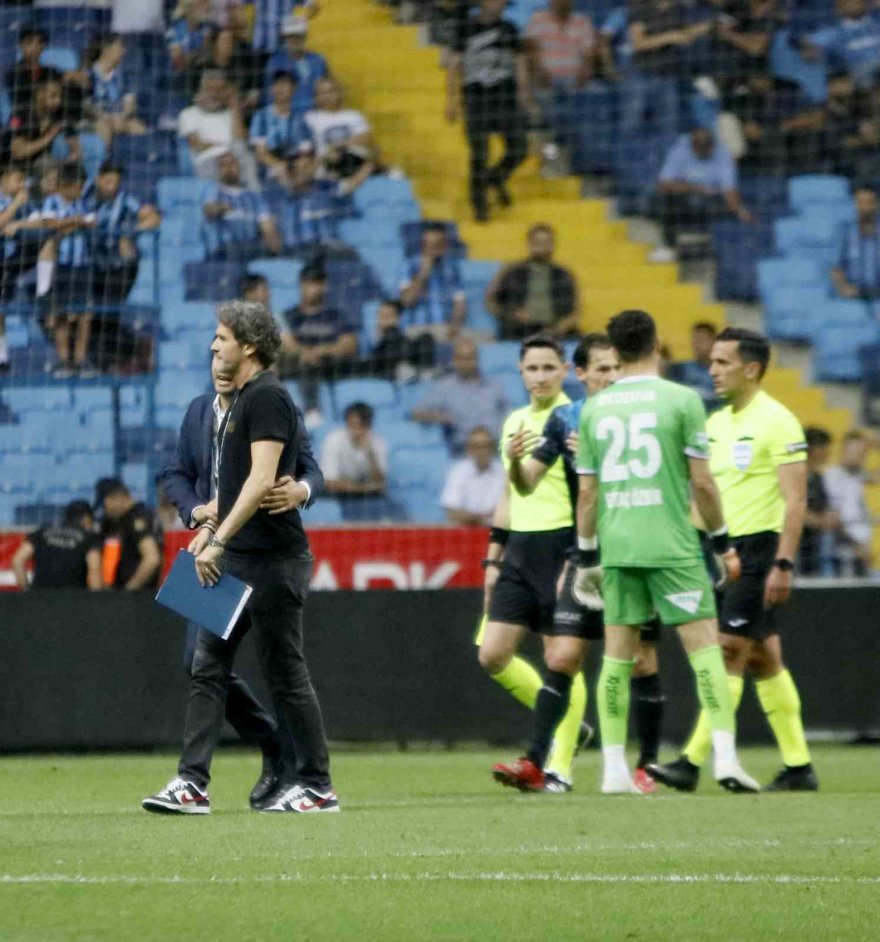 Atağa çıktıkları anda bitirdiği gerekçesiyle aralarında gerginlik yaşanırken, Adana Demirsporlu yöneticiler de sahaya girerek Belhanda'yı sakinleştirip, sahadan çıkarttı.
