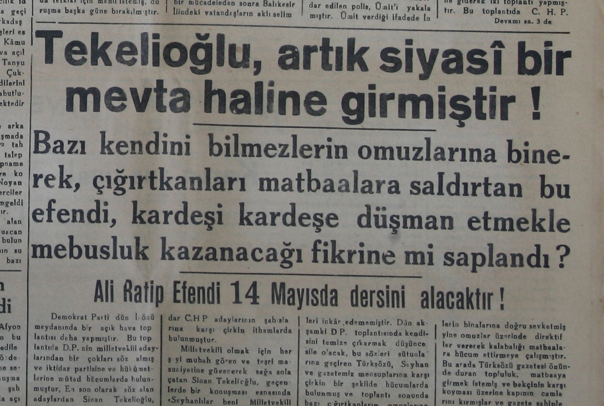 Dönemin gazeteleri, “Tekelioğlu Artık siyasi bir mevta haline gelmiştir” dedikten sonra: “Bazı kendini bilmezlerin omuzlarına binerek, çığırtkanları matbaalara saldırtan bu efendi, kardeşi kardeşi kardeşe düşman etmekle mebusluk kazanacağı fikrine mi saplantı?” diye sormuşlardır.