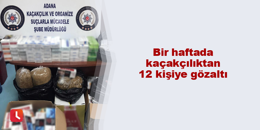 Adana'da bir hafta boyunca yapılan kaçakçılık operasyonlarında 12 zanlı gözaltına alındı. Bin 370 litre kaçak içki, 2 bin 750 paket kaçak sigara ele geçirildi.
