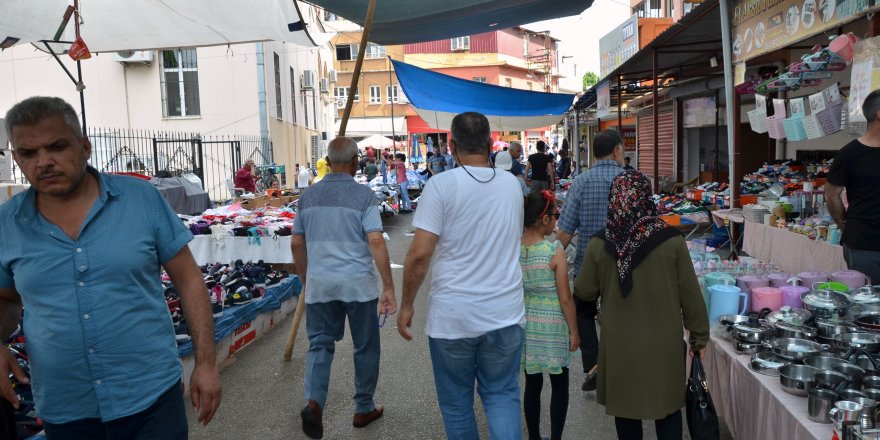 Adana'da maddi durumu iyi olmayan vatandaşlar bit pazarından bayramlık alışverişini yapıyor