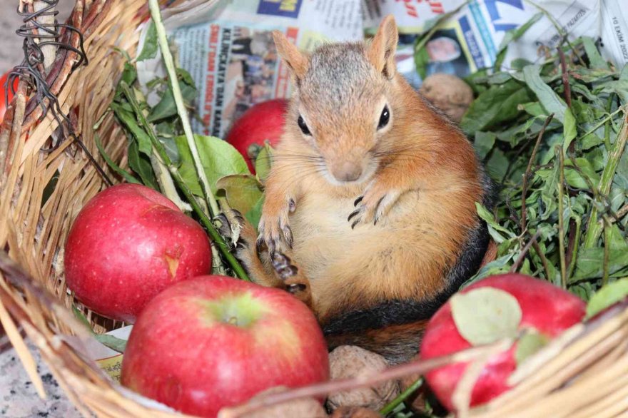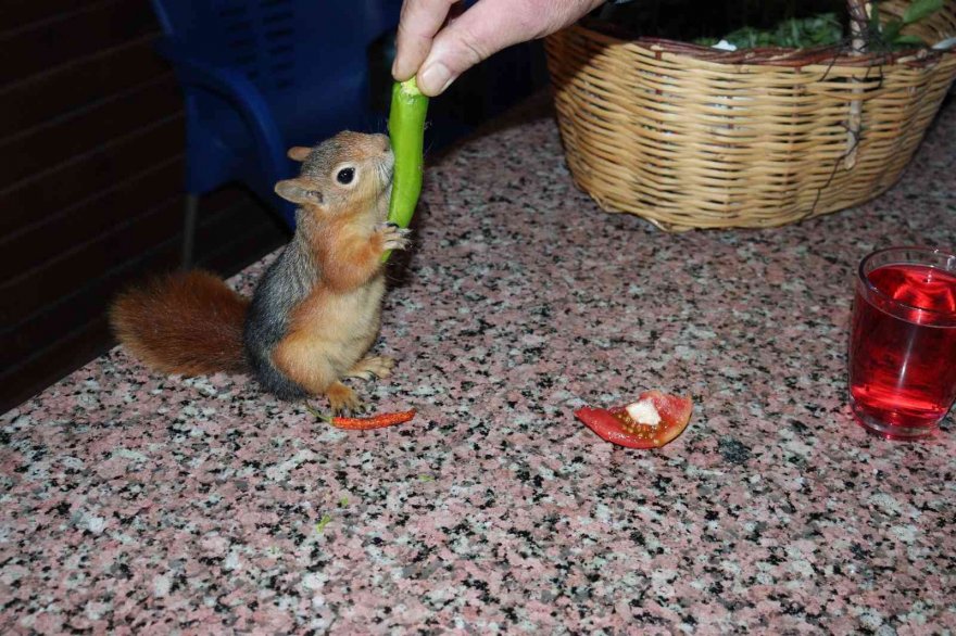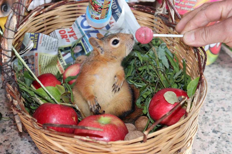 Adana'nın Pozantı ilçesinde bitkin halde bulunan yavru sincap, doğaya dönmek yerine, insanlarla yaşamayı tercih etti.